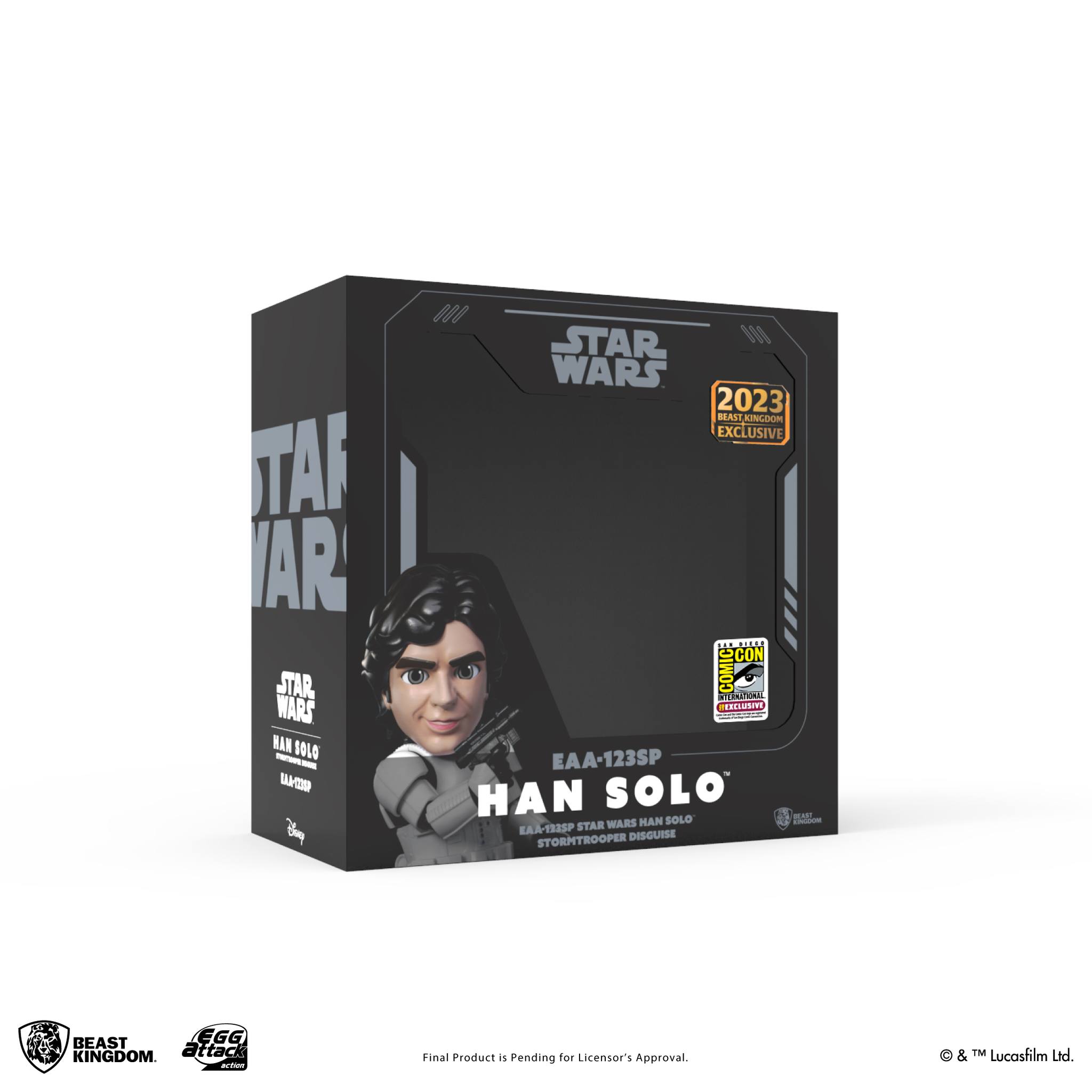 Are you ready to embark on an interstellar adventure to a galaxy far, far away? You surely remember that iconic scene from Star Wars Episode IV: A New Hope where Luke Skywalker and Han Solo disguise themselves as Imperial Stormtroopers to save Princess Leia. Now you can relive all the excitement with the Star Wars Han Solo Disguise EAA-123SP Action Figure – SDCC 2023 Exclusive! This approximately 6-inch tall figure has 22 points of articulation and showcases Han Solo in his impressive Stormtrooper disguise, complete with a distinctively weathered effect on the armor. He includes a Stormtrooper helmet and a Q-style Han Solo head sculpt with movable eyes. The rogue also comes with an E-11 blaster rifle, control console, figure stand, and 3x pairs of alternate hands. Don’t miss this for your Star Wars collection!