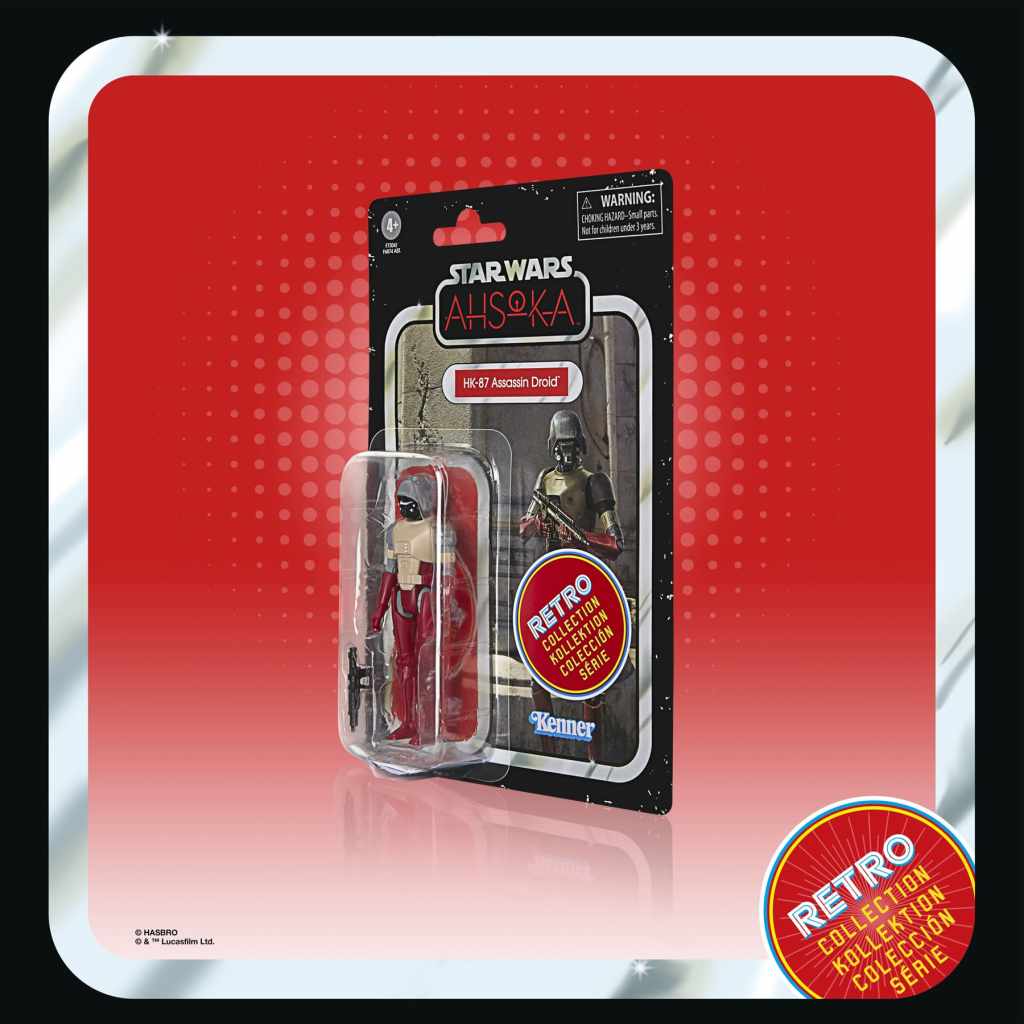 Set after the fall of the Empire, Ahsoka follows former Jedi Knight Ahsoka Tano as she investigates an emerging threat to a vulnerable galaxy. Inspired by the original 1970s Kenner STAR WARS action figures, this STAR WARS: RETRO COLLECTION 3.75-INCH HK-87 ASSASSIN DROID figure is inspired by the character’s appearance in STAR WARS: AHSOKA live-action series on Disney+.Fans and collectors can display this figure, with multiple points of articulation and Kenner-inspired packaging, in their action figure and vehicle collection. Includes figure and blaster accessory.