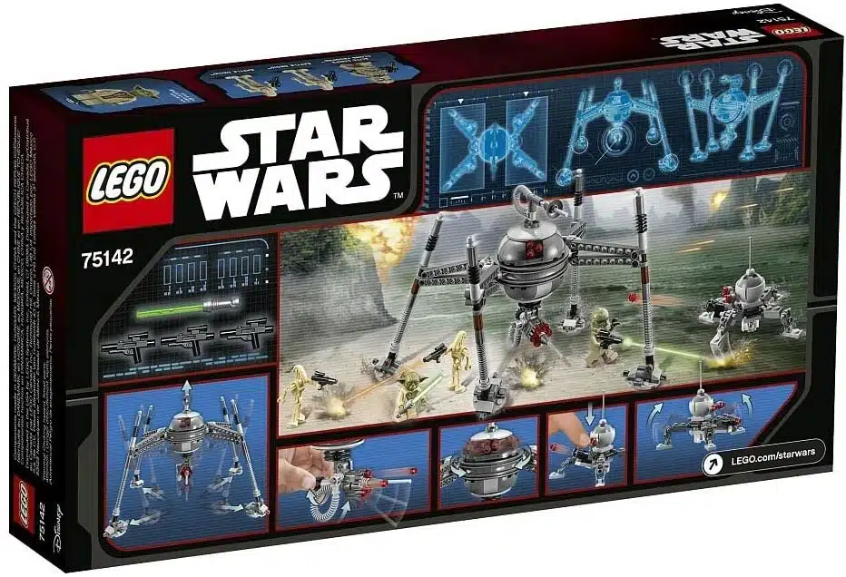 Schreite mit diesem gewaltigen Homing Spider Droid ins Getümmel. Das Modell verfügt über 4 knickbare Beine, einen Schnell-Shooter, Sensoren und eine Kanone und in dem Set sind zudem 2 Battle Droids und 2 Minifiguren enthalten.