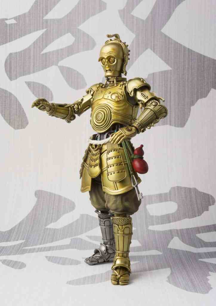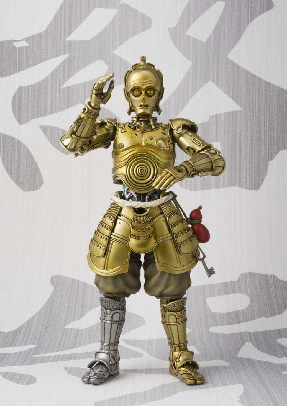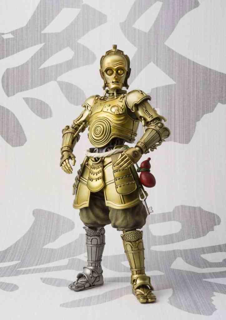Sculpted by the legendary Honyaku Karakuri, this action figure re-envisions C-3PO as a clockwork-driven translation automaton. Eyes and mouth are movable. The set includes two pairs of optional hands and a fan.