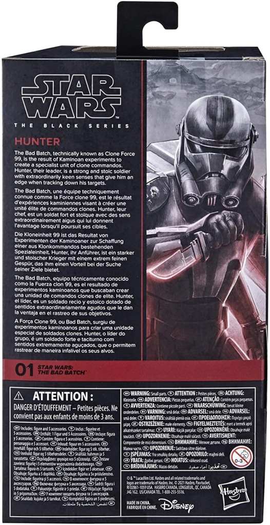 - Die Bad Batch Hunter Actionfigur: Diese hochdetaillierte 6-Zoll-Actionfigur stellt Hunter dar, den Anführer der als „Bad Batch“ bekannten Eliteeinheit der Klontruppen aus der gefeierten Zeichentrickserie Star Wars: The Clone Wars.