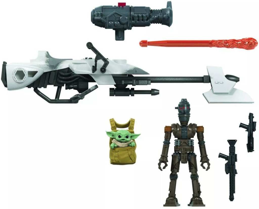 - VON DER THE MANDALORIAN SERIE INSPIRIERTE ACCESSOIRES & DESIGN: Das 6 cm große IG-11 & The Child Speederbike Figur und Fahrzeug-Set enthält ein The Child Accessoire, 2 Blaster, 1 Projektilwerfer, Projektile und ein von der Serie inspiriertes Design