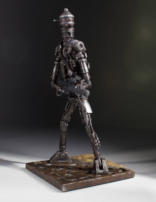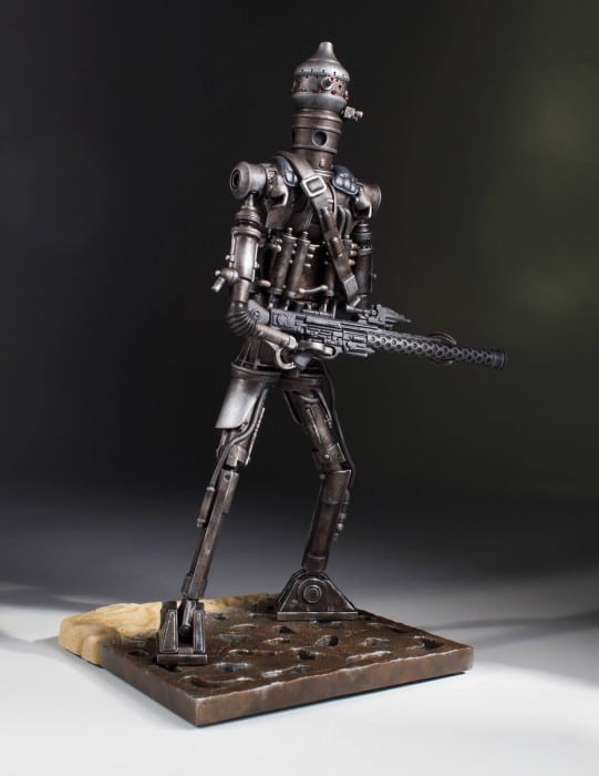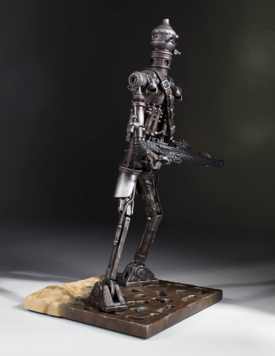 The fearsome assassin droid IG-88 was a rival to Boba Fett and was an imposing presence when he arrived on the Executor, answering Darth Vader’s call for ruthless bounty hunters. Far more terrifying than battle droids were the assassin droids, who were independently programmed mechanical killers that roamed the galaxy and had no masters. IG-88’s battered, chrome, war droid exterior suggests a richer, more violent history than we were able to glimpse in The Empire Strikes Back. The artists at Gentle Giant take you on a journey to see IG-88 in his prime and on the hunt with his cold, mechanical stare fixed on his prey. With his guns drawn, IG-88 won’t be stopped until his has his target dead or alive! IG-88 is the second statue in Gentle Giant’s new 1:8th Collector’s Gallery line, celebrating 40 years of the Star Wars universe. Each limited edition, hand-painted piece is cast in high quality polyresin with crisp details. This statue also comes individually numbered with a matching certificate of authenticity.
