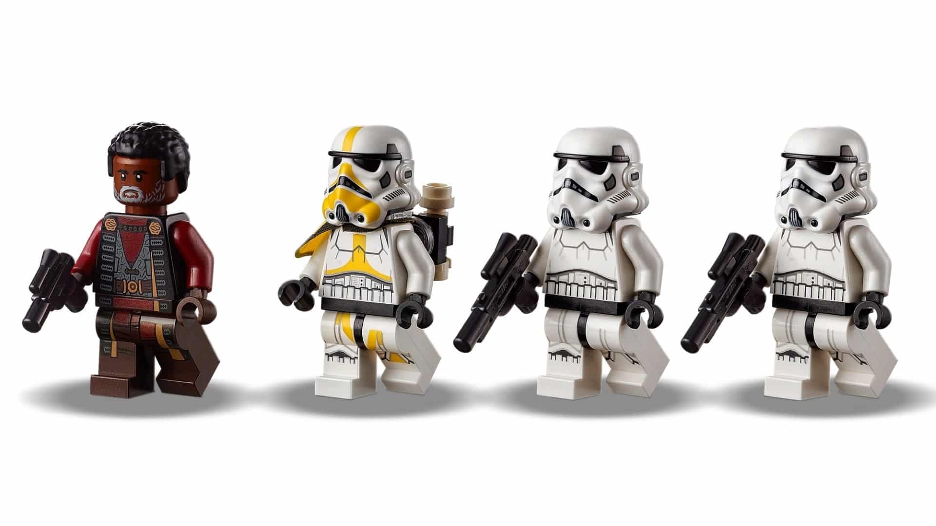 - Beinhaltet 4 LEGO® Minifiguren: Greef Karga mit einer Blasterpistole, 2 Sturmtruppler mit Blastern und einen Artillerie-Sturmtruppler (neu ab August 2021) mit Mörser und Rucksack.