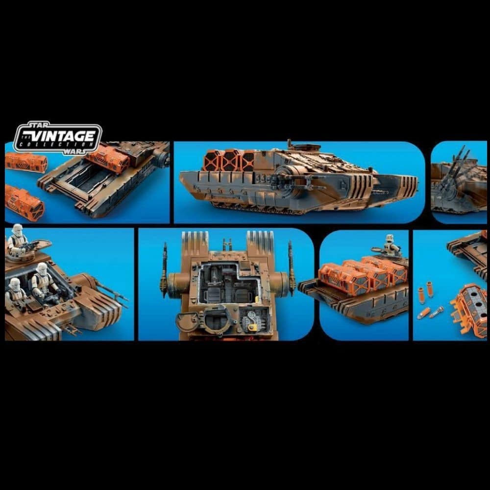 Imagine recreating iconic moments from Star Wars: Rogue One with this Star Wars The Vintage Collection 3.75-inch-scale Imperial Combat Assault Tank vehicle that features premium deco, movie-inspired design, and Kyber crystal canister accessories. Vehicle can fit three 3.75-inch-scale Star Wars figures (sold separately).