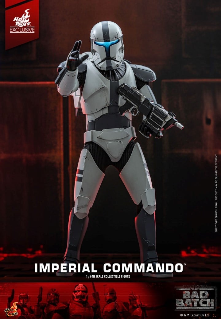 During the early years of the Galactic Empire’s reign, the Imperial Commando was a unit of Clone Commandos stationed at Mount Tantiss on the planet of Wayland where the Empire’s home of the Imperial cloning program was located. Continuing the expansion of Hot Toys’ Star Wars collectible series, Hot Toys is pleased to introduce the new 1/6th scale Imperial Commando collectible figure as seen in the animated series! This is an Hot Toys exclusive item available in limited quantity of 2,500 pieces, exclusively in select markets. The collectible figure features a highly detailed Clone Commando armor with white and grey paint applications, a helmet with LED light-up function, a blaster rifle, a thermal detonator, a backpack, and a display base! This trooper will surely be a great addition for any Star Wars fans!