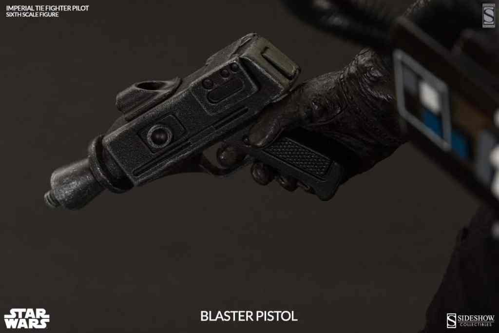 Emblazoned with stark white Imperial insignia, the pilot wears his unmistakable streamlined helmet, and glossy black armor fitted over a pristine standard-issue flight suit. Interchangeable wrist gauntlets allow dexterity for handling TIE Fighter controls, and positive gravity pressure boots keep him grounded in all situations. Although typically found in the cockpit, Sideshow’s Exclusive TIE Fighter Pilot also comes armed with a ‘retro’ inspired blaster – a nostalgic feature Star Wars collectors are sure to enjoy. Ready to serve the Galactic Empire with honor and distinction, the Imperial TIE Fighter pilot is an exceptional addition to any Star Wars military collection!