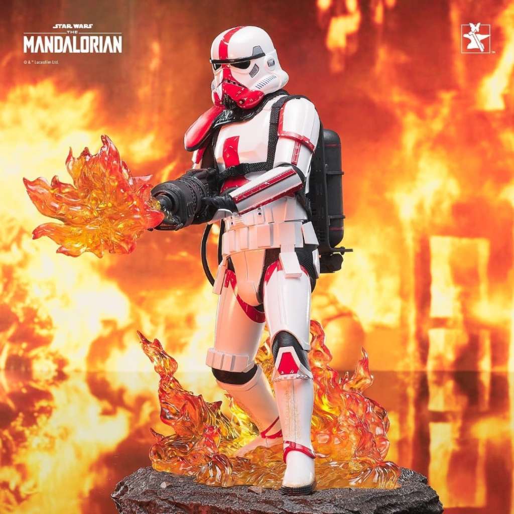 One of the most devastating of the Empire’s specialized stormtrooper units, the incinerator trooper wields powerful flamethrower weaponry to set enemies and their fortifications ablaze. Designed, modeled and prototyped using top-of-the-line 3D technology, this 1:7 scale statue represents the next of our new collection from the ongoing Star Wars saga. Each statue is hand-cast, hand-painted and hand-numbered with a limited-edition certificate of authenticity. May the Force be with you!