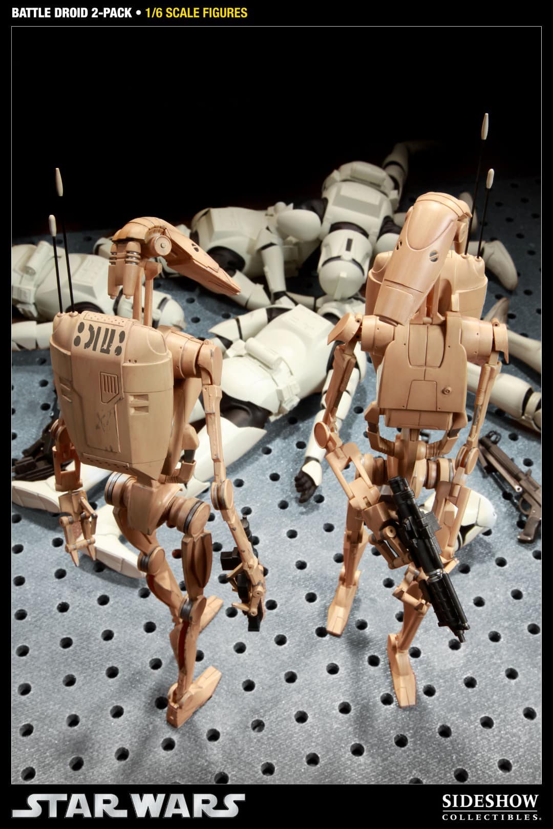 - Two (2) newly developed and fully articulated Battle Droids bodies with over 20 points of movement.