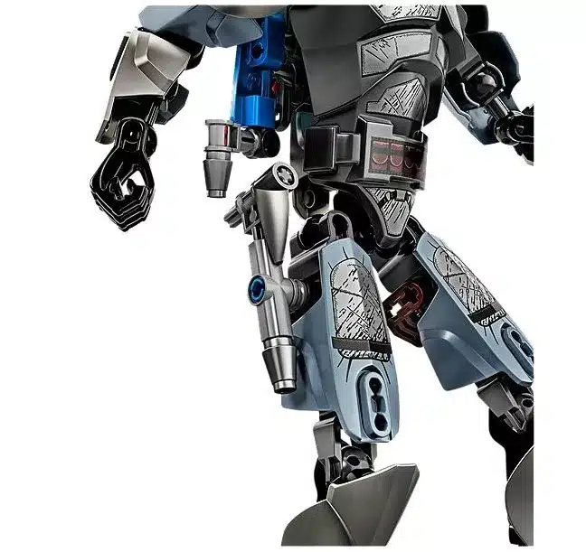 • Mit voll beweglichen Gliedmassen, Jetpack mit Raketen-Abschussfunktion, 2Blaster-Pistolen zum Bauen, Holstern und einer detailreichen Rüstung im Metallic-Look