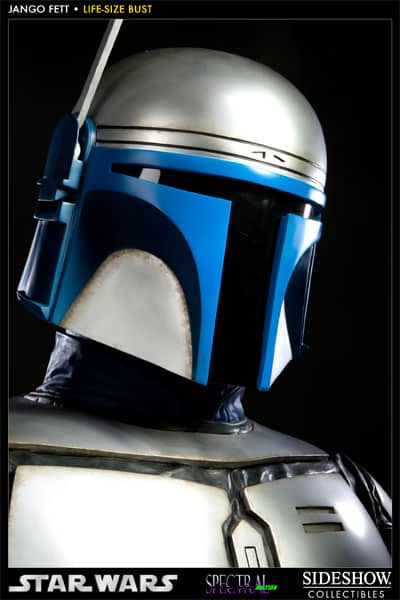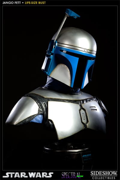 Sideshow Collectibles proudly presents newest entry in our Star Wars Life-Size bust collection, Jango Fett. In partnership with Spectral Motion effects studio, the famed bounty hunter has been sculpted with meticulous attention to detail. Captured in real life 1:1 scale, the Jango Fett Life Size Bust measures over two feet tall; each piece is individually painted and finished to create an outstanding, hand crafted addition to any Star Wars display.