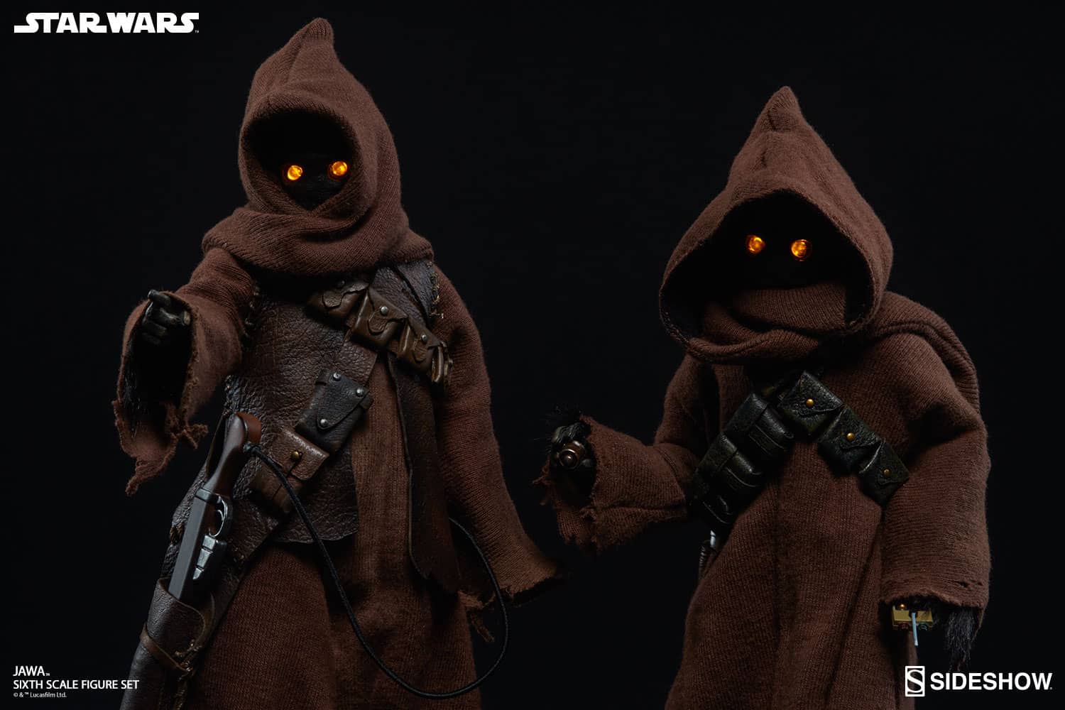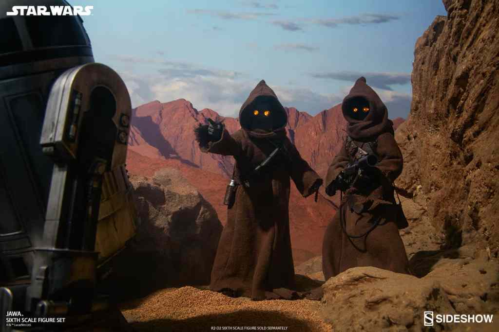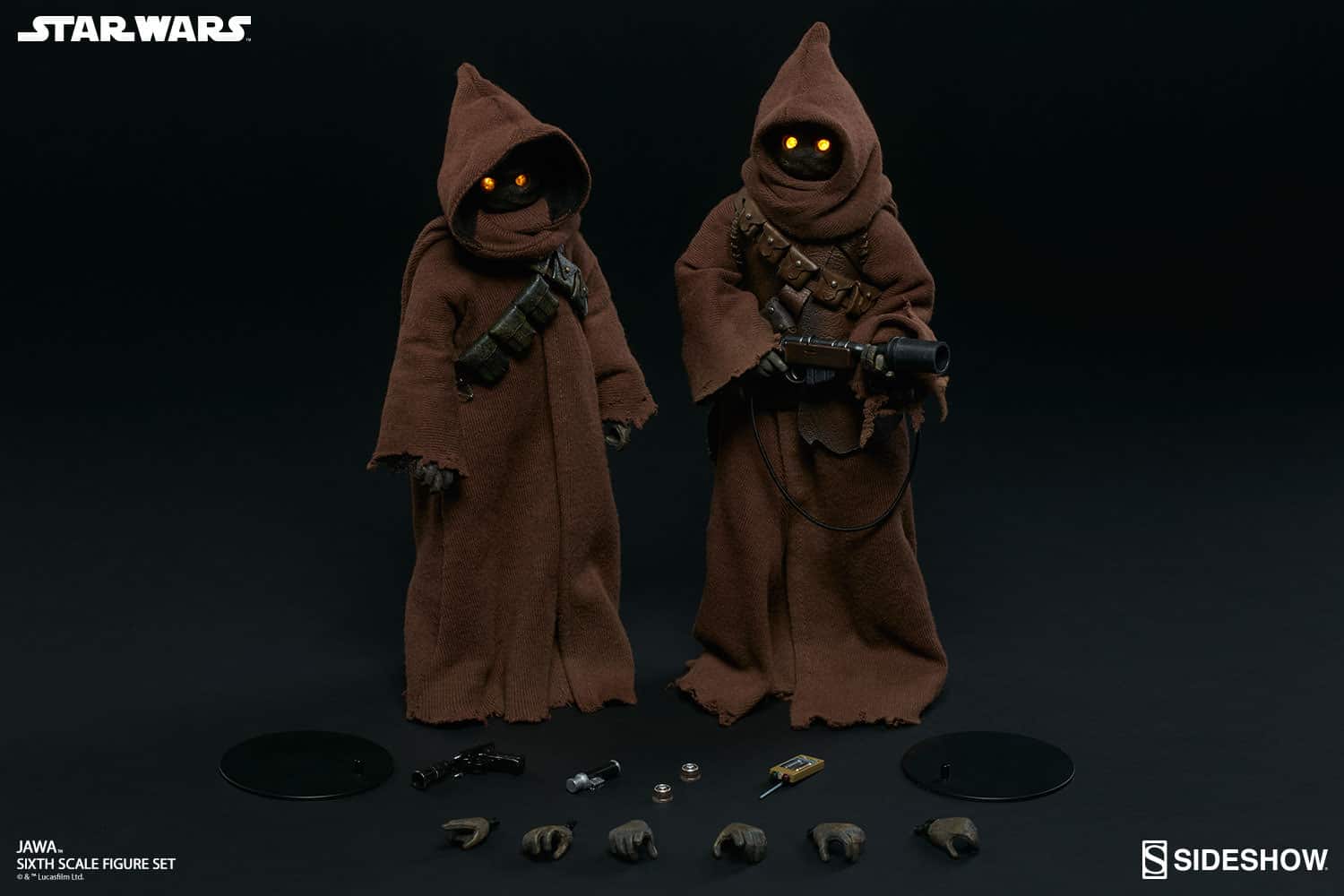 Vor exakt elf Wochen teaserte Hersteller Sideshow Collectibles pünktlich zur jährlichen Star Wars Celebration ein Jawa Sixth Scale Figuren-Set. Heute wurden dann endlich alle Pressebilder und weiteren Informationen veröffentlicht. Üblicherweise werden erst die Bilder und die ersten Informationen präsentiert während die Vorbestellphase dann ein bis zwei Tage später startet. Dieses Mal wurde aber direkt nach einem Teaserbild die Pre-Order live geschaltet.