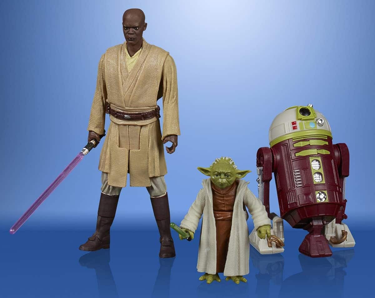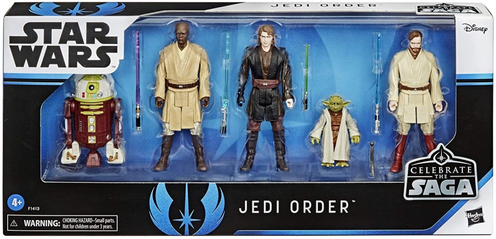 - KULTIGE STAR WARS CHARAKTERE: Der Star Wars Celebrate the Saga Jedi-Pack kommt mit Obi-Wan Kenobi, Mace Windu, Anakin Skywalker und Yoda Action-Figuren mit mehreren Bewegungspunkten und einer R7-A7 Figur
