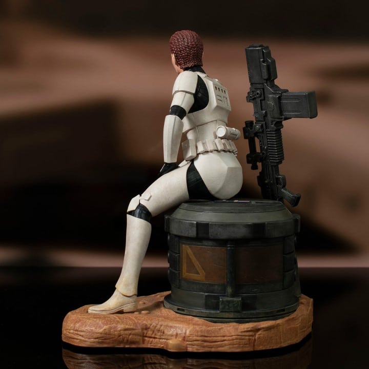 A Gentle Giant LTD release! Taken off the streets of Corellia by the Imperial Mission, Jes Gistang was raised for a life in the Stormtrooper Corps, eventually joining the 407th Division’s Joker Squad. Assigned the BB-23 Heavy Blaster Cannon, Gistang fell in battle when one of her power packs was pierced by blaster fire, but her spirit lives on in this 1/7 scale resin statue! Part of the Premier Collection, this statue depicts her resting after a battle, blaster at her side, and is limited to only 2,000 pieces. It comes packaged in a full-color window box with a numbered certificate of authenticity.