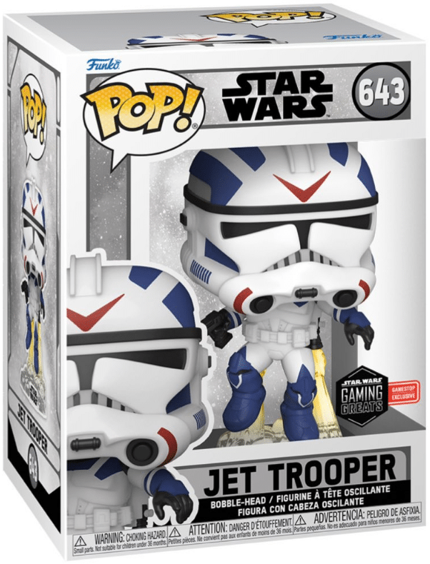 Call in aerial reinforcements for your Star Wars™ Battlefront II™ set with the Pop! Jet Trooper™! Celebrate the most stellar fandom of them all by adding this exclusive, trooper to your Star Wars™ Gaming Greats collection. Vinyl figure is approximately 12.2 cm tall.