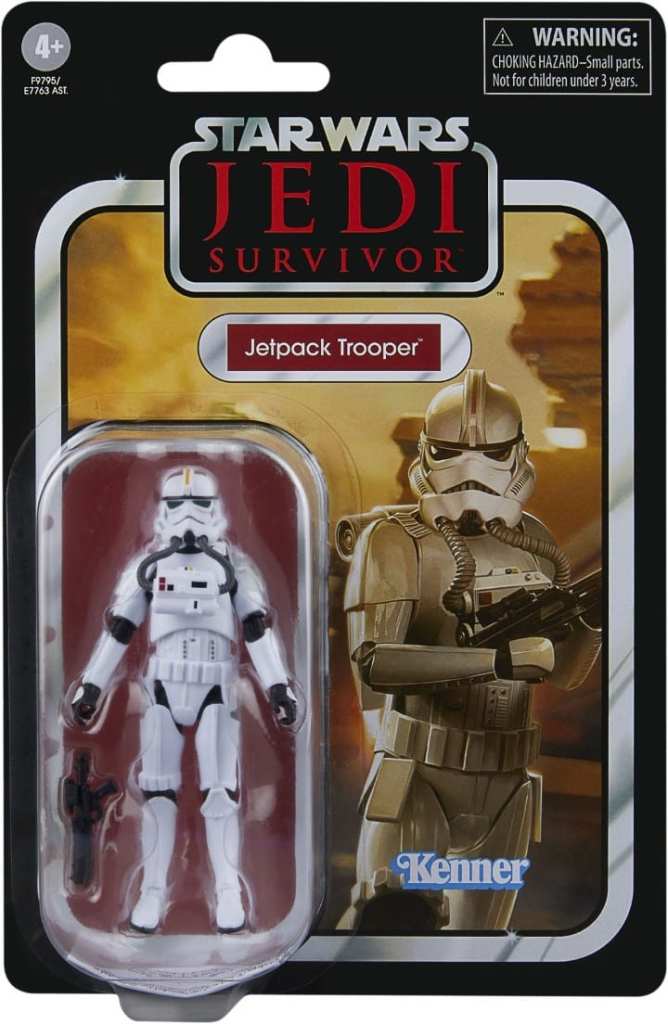 Jetpack Troopers can navigate otherwise impassable terrain with their short-ranged booster packs. Their specialized training and equipment give them superiority over most entrenched infantry positions. Inspired by the STAR WARS JEDI: SURVIVOR video game, this 3.75-inch-scale figure (VC #336) comes with a blaster accessory and a removable jetpack, and makes a great addition to any fan’s collection. These collectibles feature premium detail and design across product and packaging, as well as collector-grade deco that fans have come to know and love.