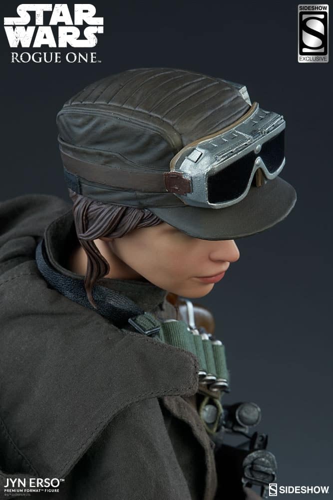 The exclusive edition of the Jyn Erso Premium Format™ Star Wars Figure includes an entirely new head sculpt with highly detailed hat and goggles.