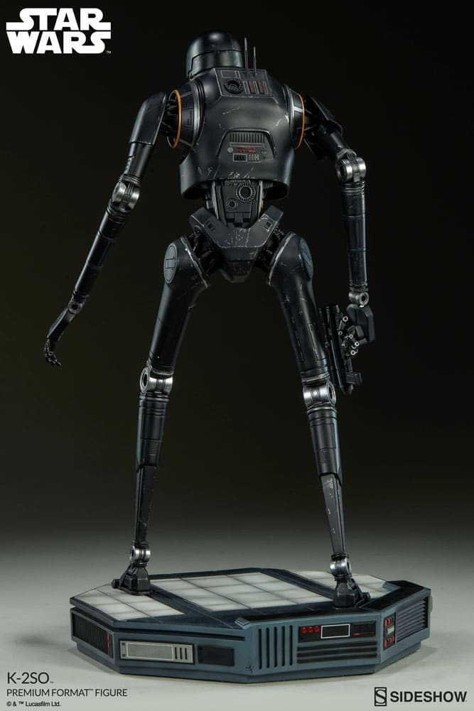 K-2SO measures 22” tall, standing atop a Citadel Tower themed base. His black external armor is visibly weathered and detailed to recreate the battle damage this droid has received during his service to both the Empire and the Rebellion.
