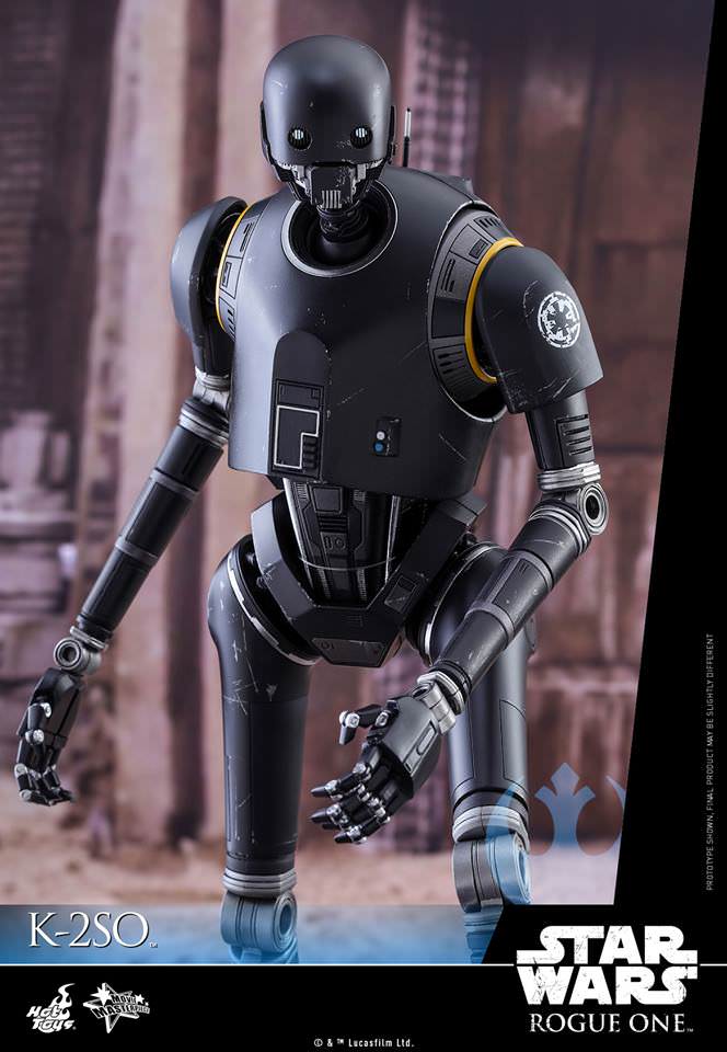 Now Hot Toys is very excited to introduce the widely anticipated 1/6th scale collectible figure of this new droid! Meticulously crafted based on the appearance of the droid in the new film, the highly accurate K-2SO collectible figure stands approximately 36cm tall and features a sophisticatedly constructed mechanical structure, LED light-up eyes with separate rolling eyeballs, a blaster pistol, a grenade, and a specially designed figure stand!