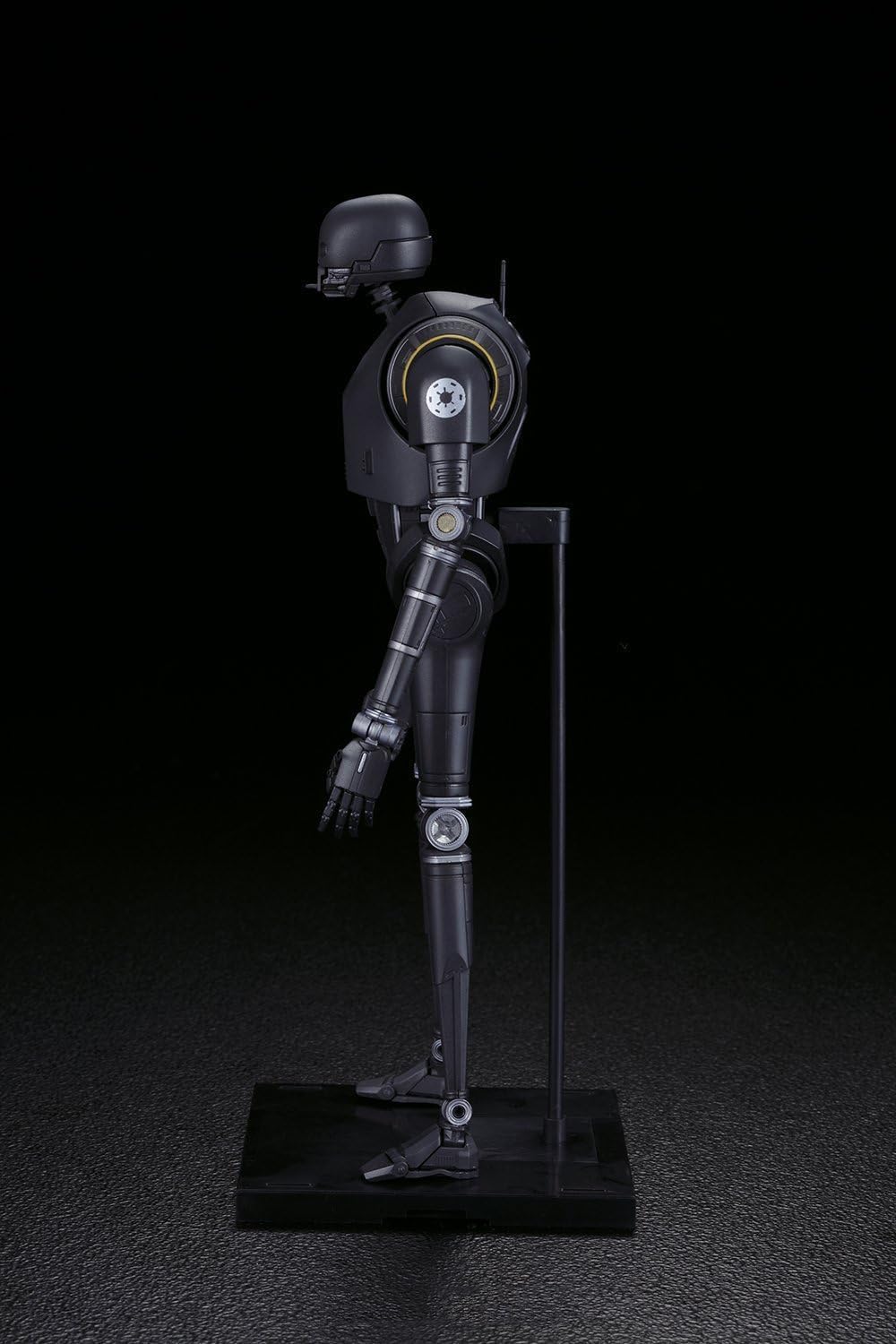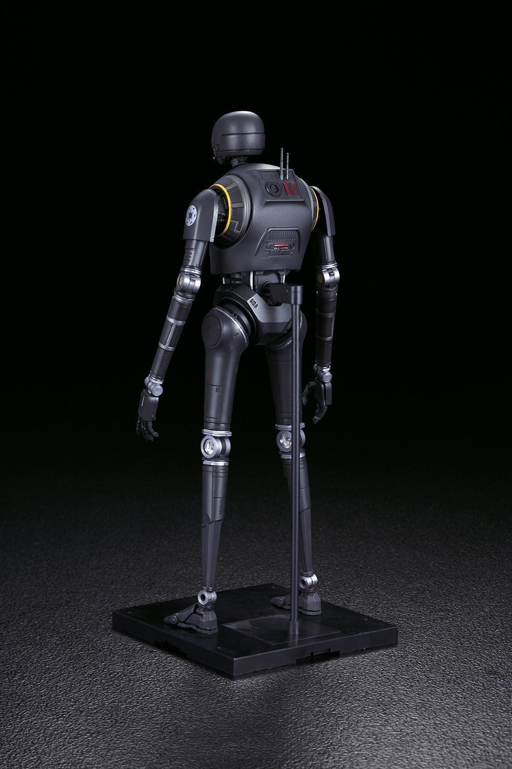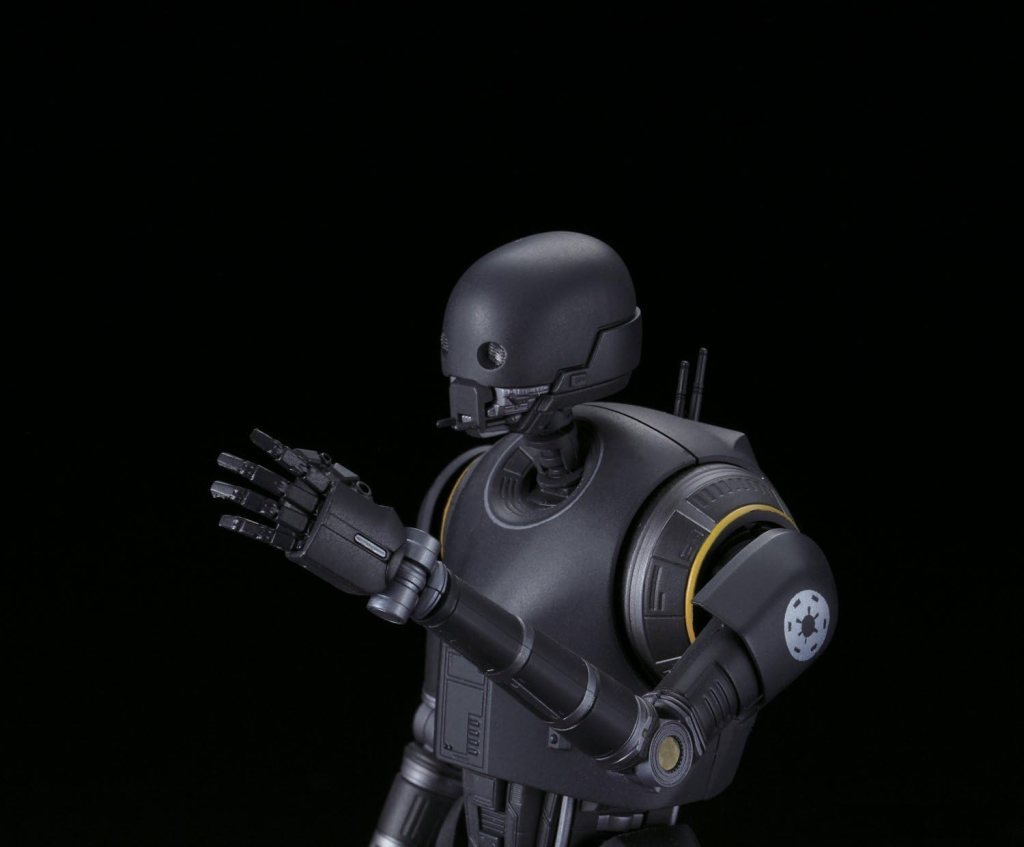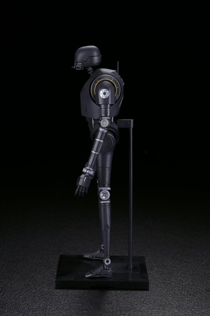 Modellbausatz des Droiden K-2SO aus „Rogue One: A Star Wars Story“ im Maßstab 1:12 von Bandai. Der Bausatz enthält insgesamt 131 Bauteile sowie 27 Decals, sowohl selbstklebend als auch als Nassschiebebilder. Die fertige Figur ist artikuliert uns lässt sich wie eine Actionfigur in verschiedenen Posen darstellen. Außerdem enthalten sind austauschbare Hände und eine Standplatte mit Stativ.