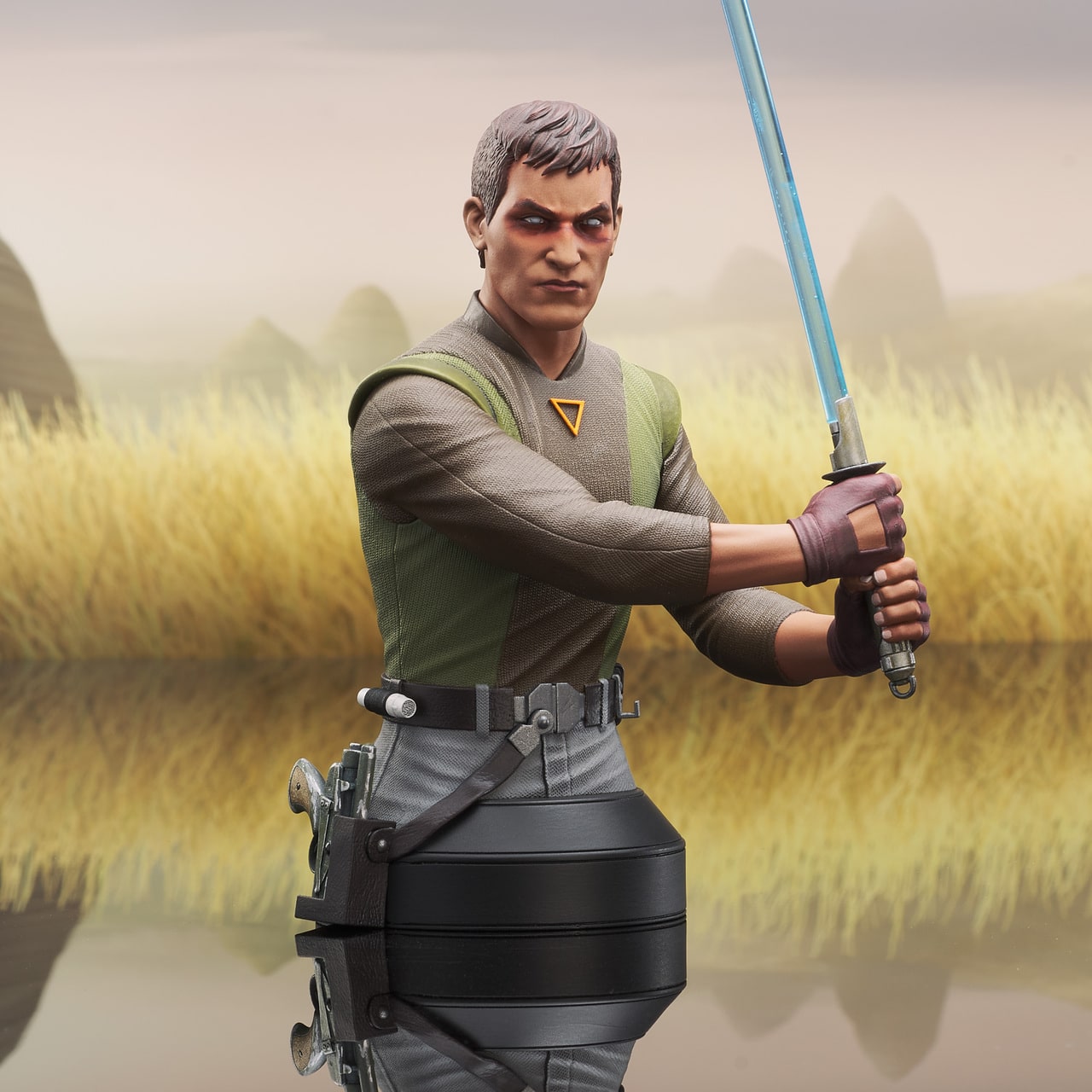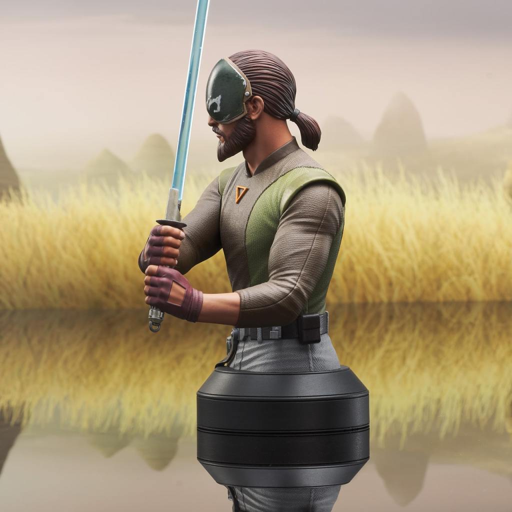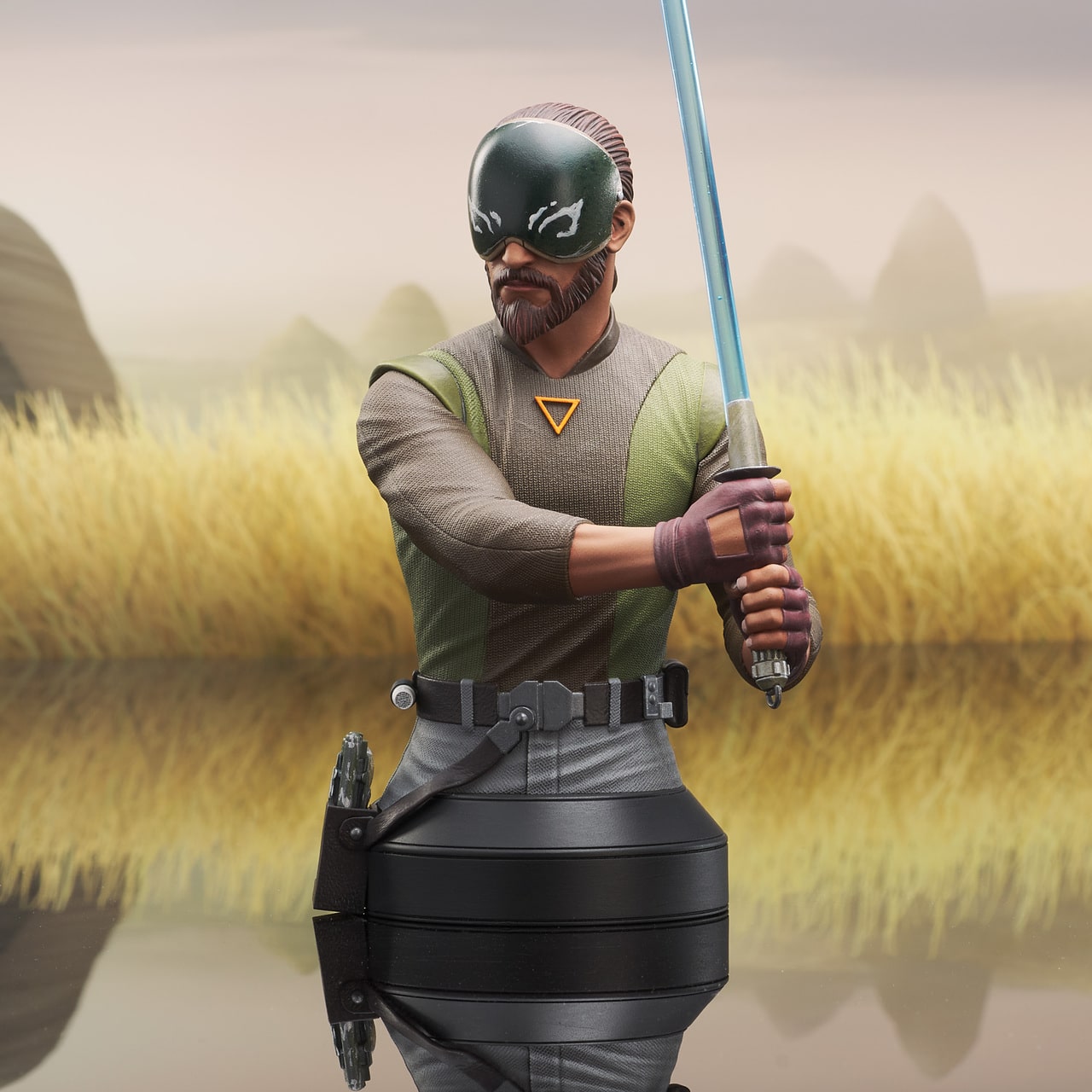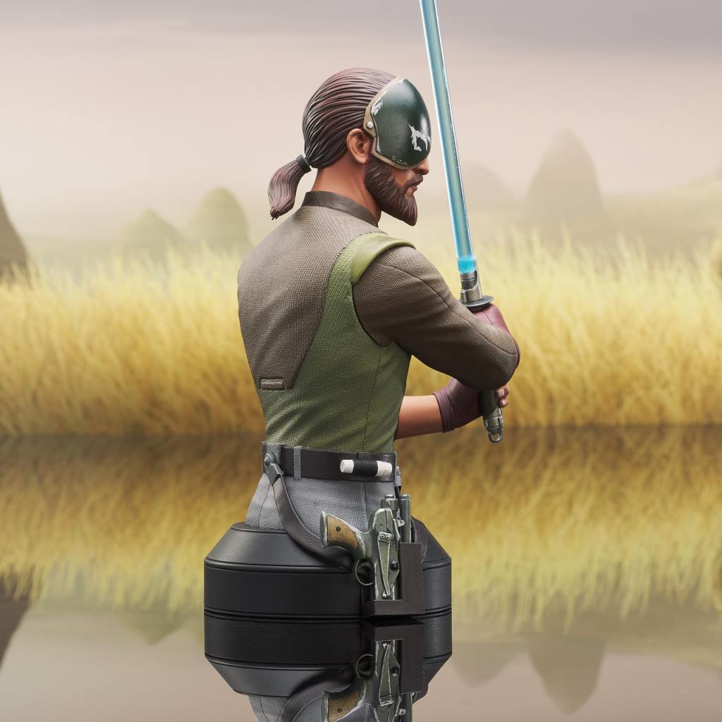 A Gentle Giant Ltd. release! Become one with the Force! Spectre Cell member and Ghost second-in-command Kanan Jarrus joins the 1/6 line of mini-busts with this all-new sculpt of the Jedi Knight! Featuring interchangeable helmeted and unhelmeted heads, this detailed mini-bust is limited to only 2,000 pieces and comes packaged in a full-color box. Designed by Barry Bradfield, sculpted by Paul Harding!