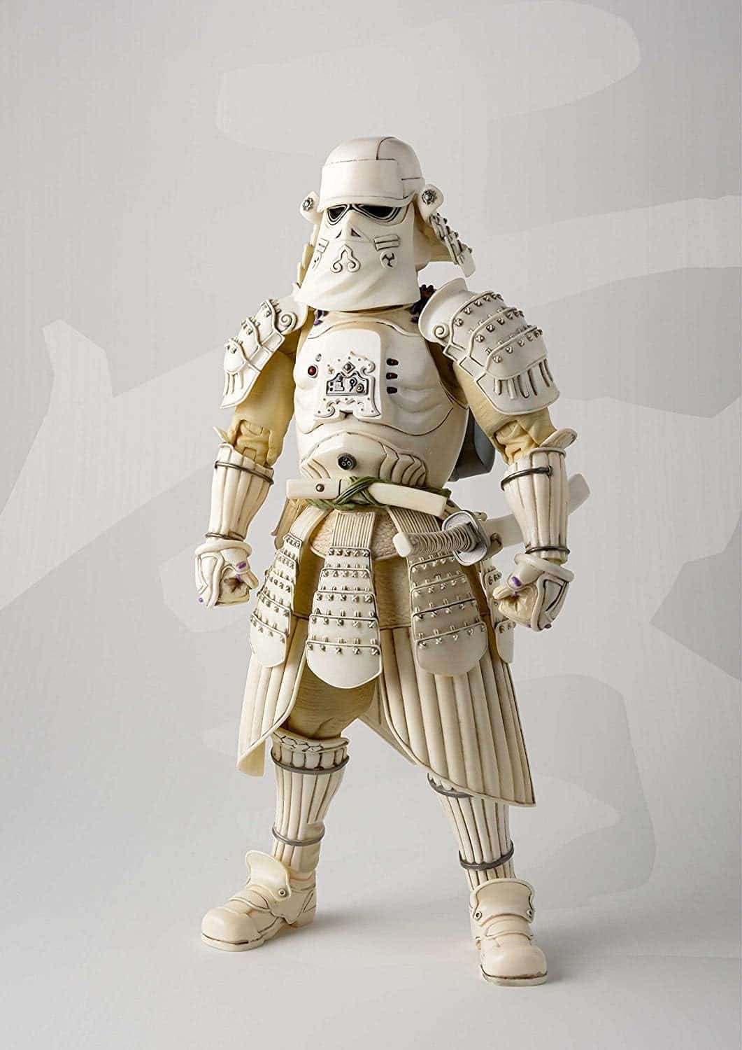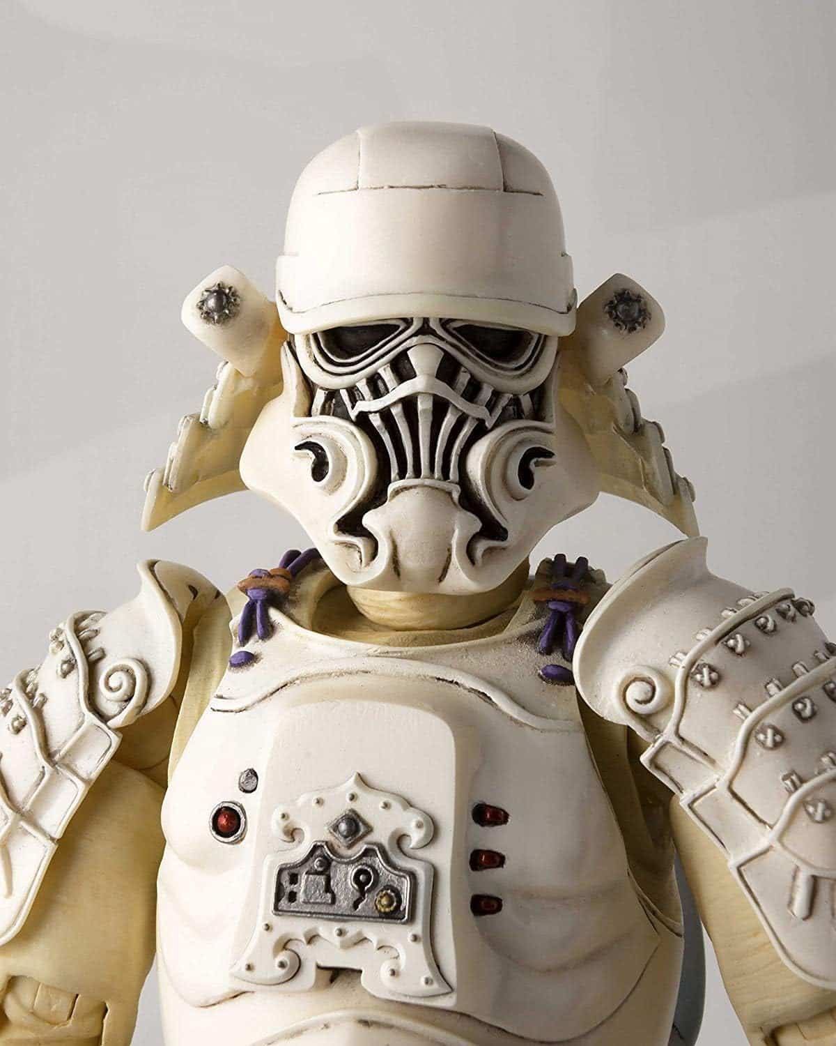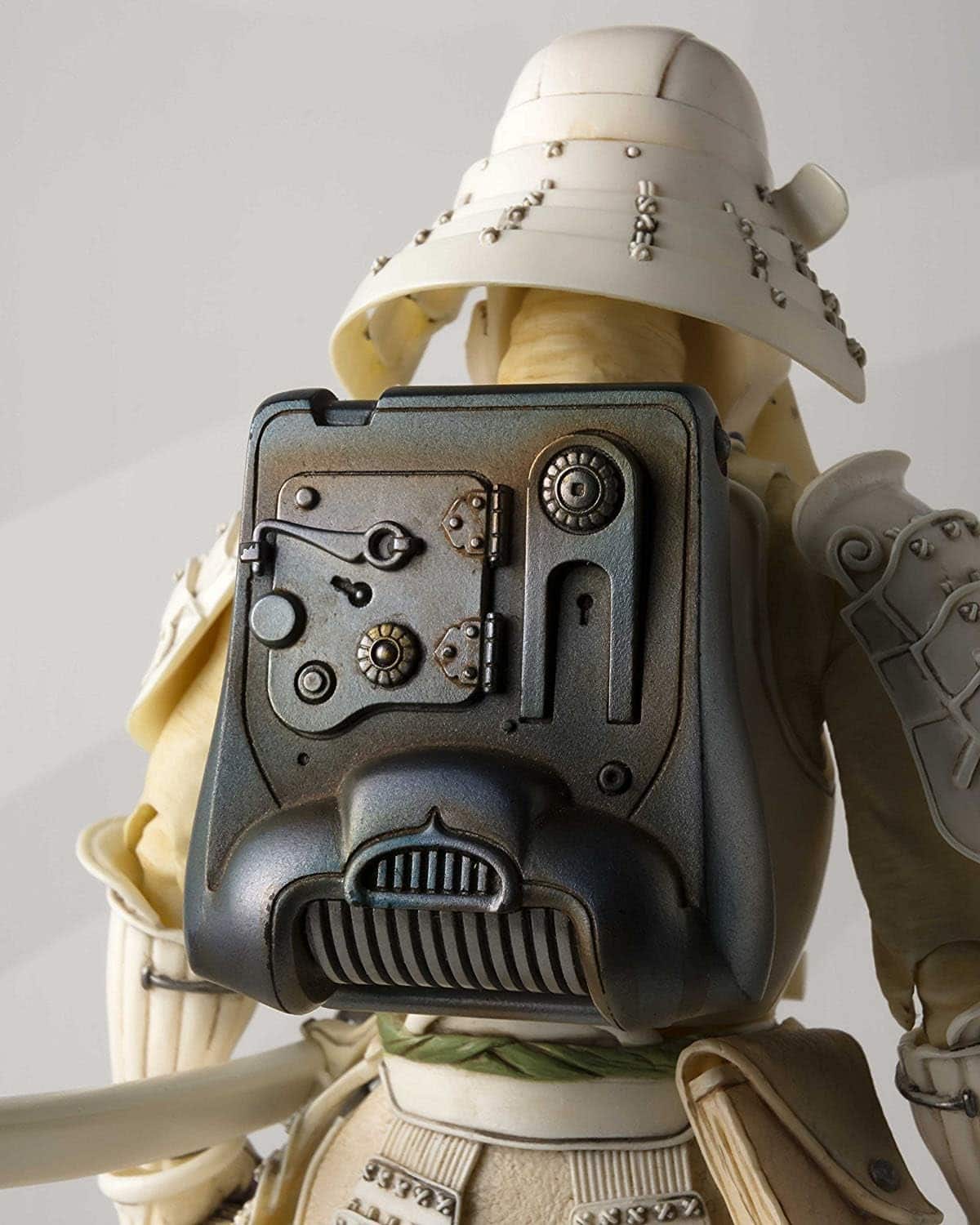 Envisioned by the talented Takayuki Takeya, Tamashii Nations is releasing the latest Meisho Movie Realization series! The beautiful white colored thick armor is adapted to cold weather. The three legged blaster which appeared in the film is also included in the set. Optional right and left hand, Japanese style sword, blaster included.