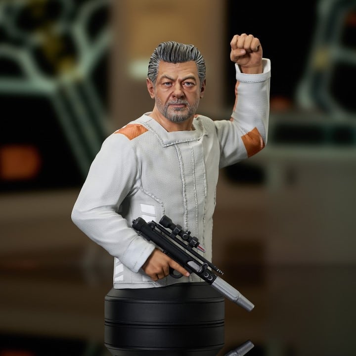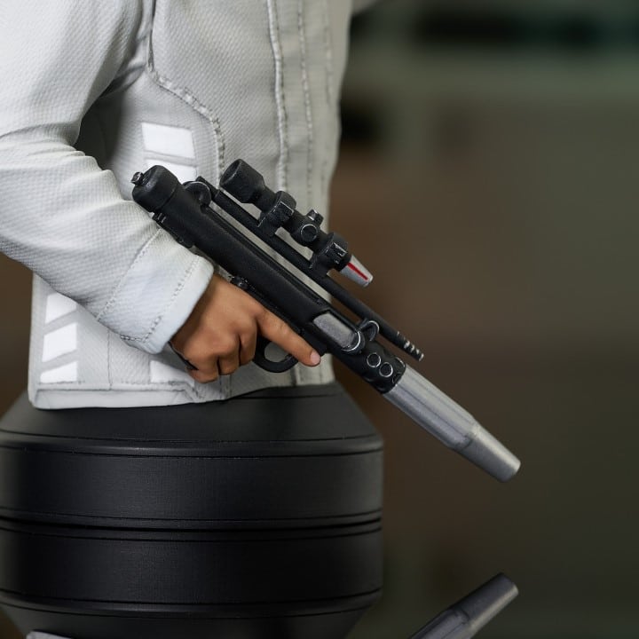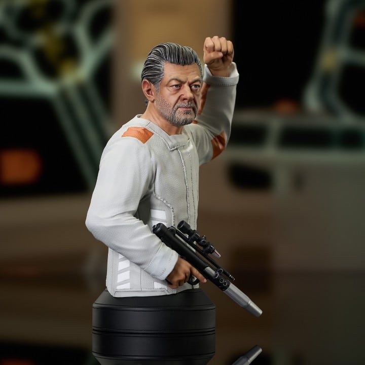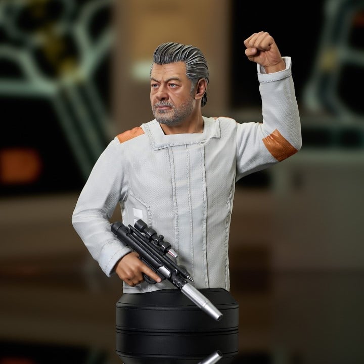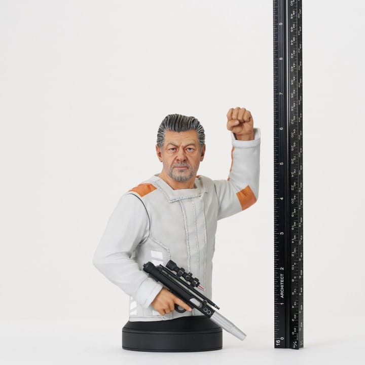 A Gentle Giant LTD release! Down with the Empire! Imperial prisoner and gang boss Kino Loy makes his escape into the Star Wars 1/6 scale mini-bust line from GG LTD! Measuring approximately 6.5 inches tall, with one hand raised in victory and the other holding a DH-17 blaster pistol, this mini-bust sits atop a black pedestal base and is limited to only 2000 pieces. It comes packaged in a full-color box with a numbered certificate of authenticity.