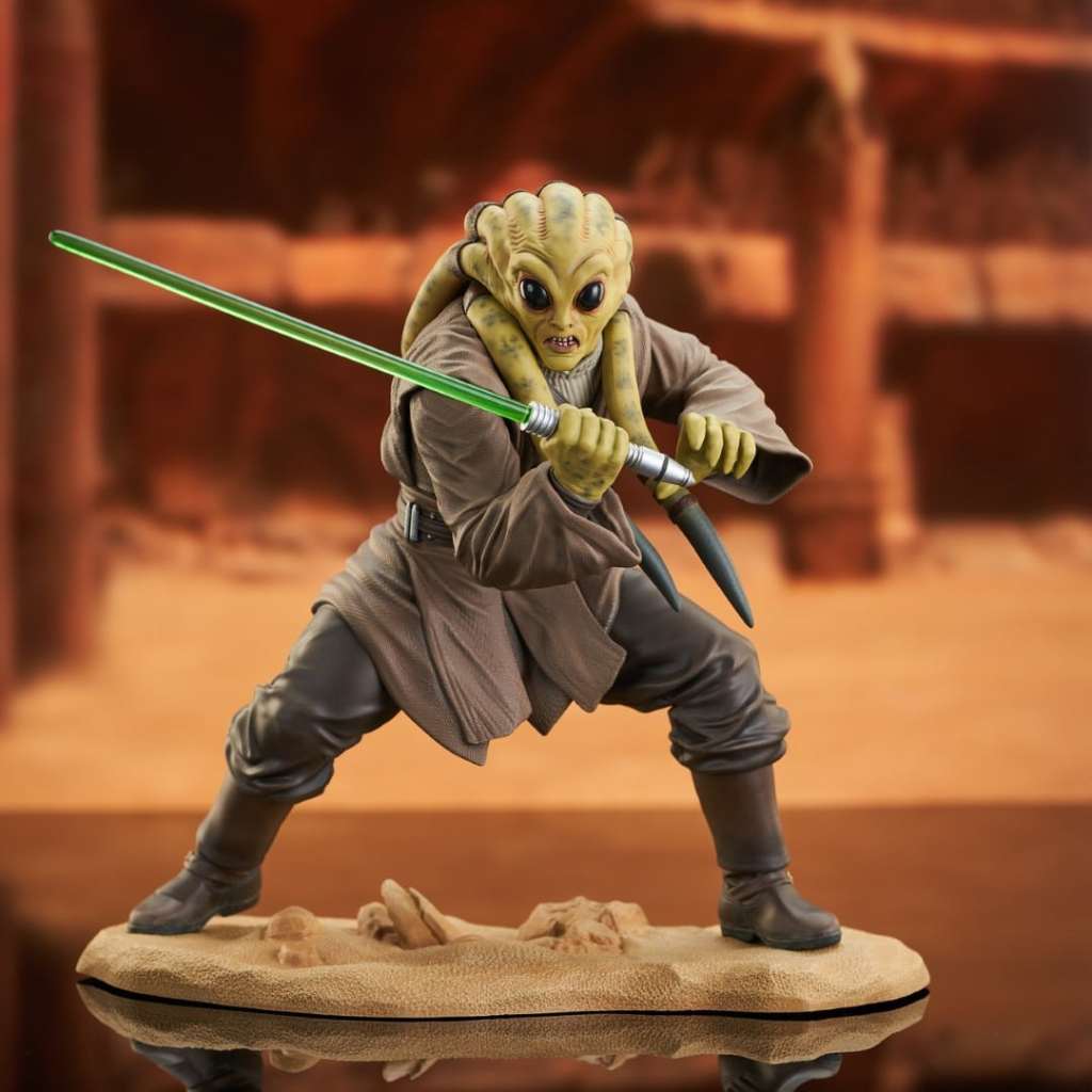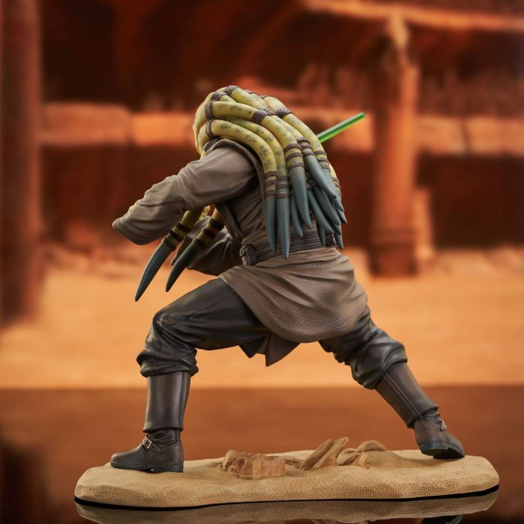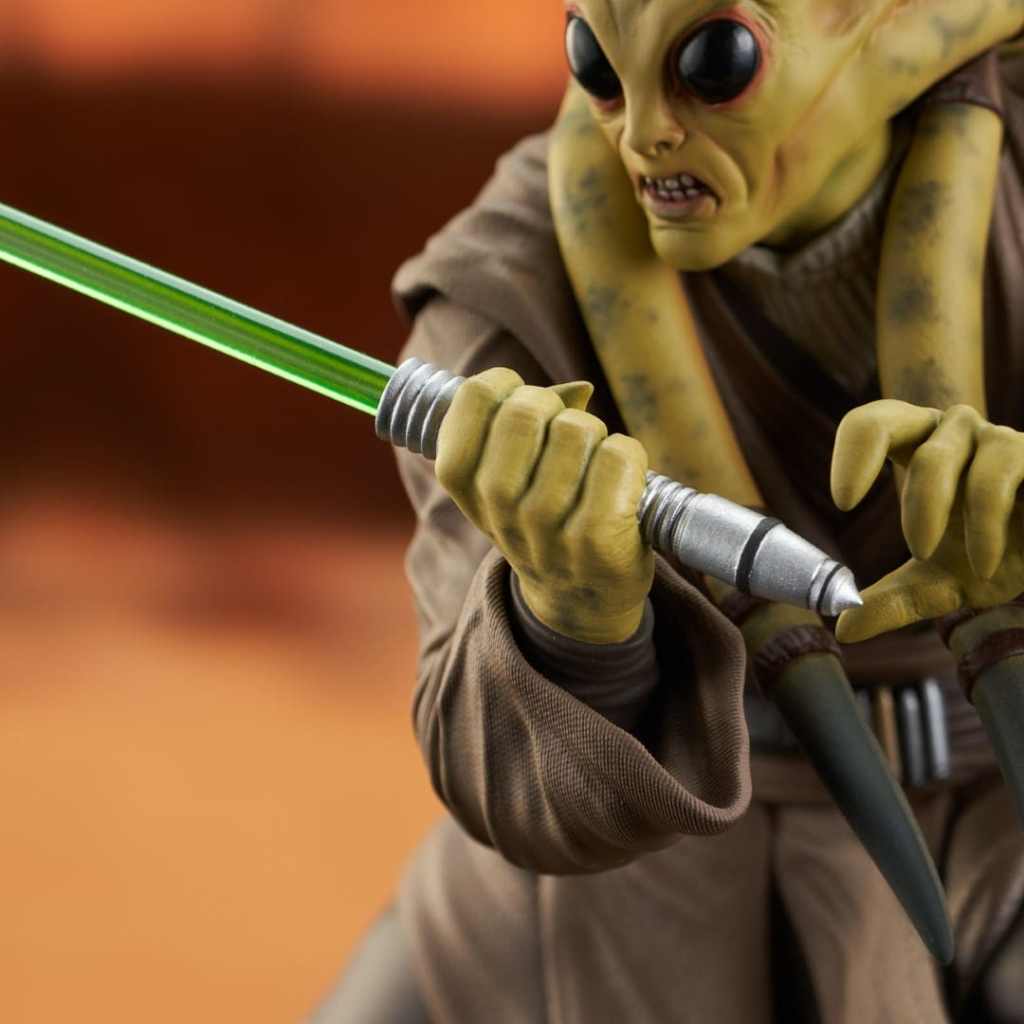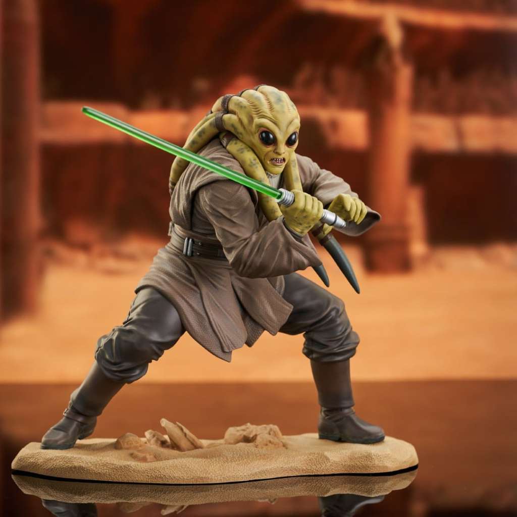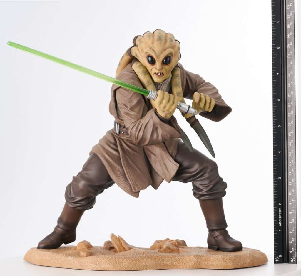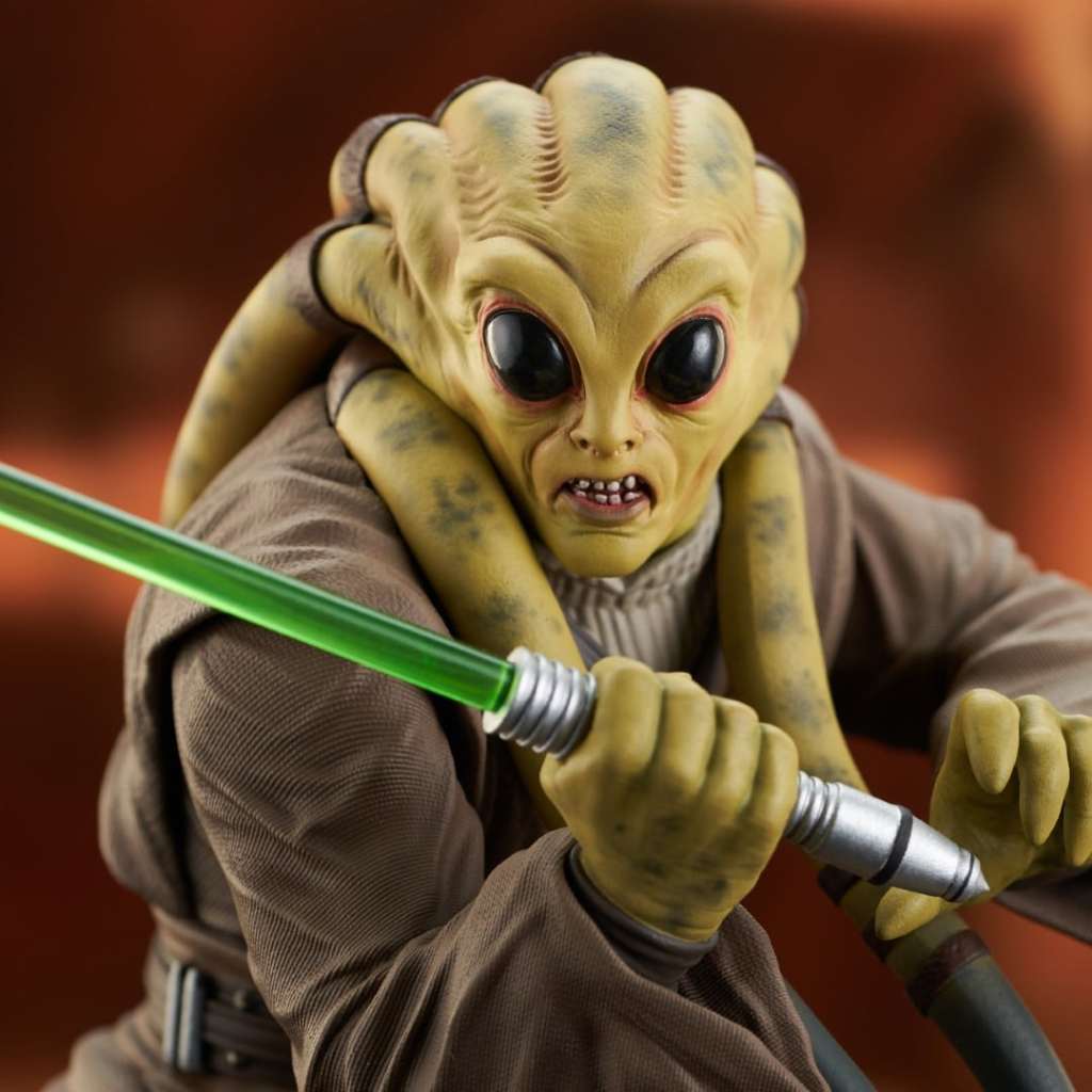 A Gentle Giant Ltd. release! Straight outta Glee Anselm™! Few alien Jedi were as distinctive as Kit Fisto™, the green Nautolan™ with a head full of tentacles. This 9-inch statue of the Jedi Master™ shows him crouched with his green-bladed lightsaber at the ready. Based on his appearance in Star Wars: Attack of the Clones, this sculpture is limited to 3000 pieces and comes packaged with a certificate of authenticity in a full-color box.