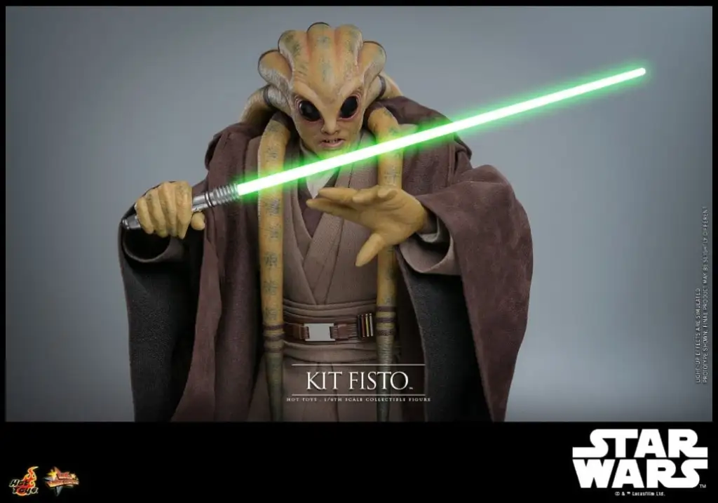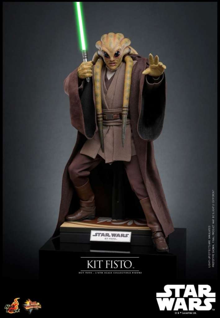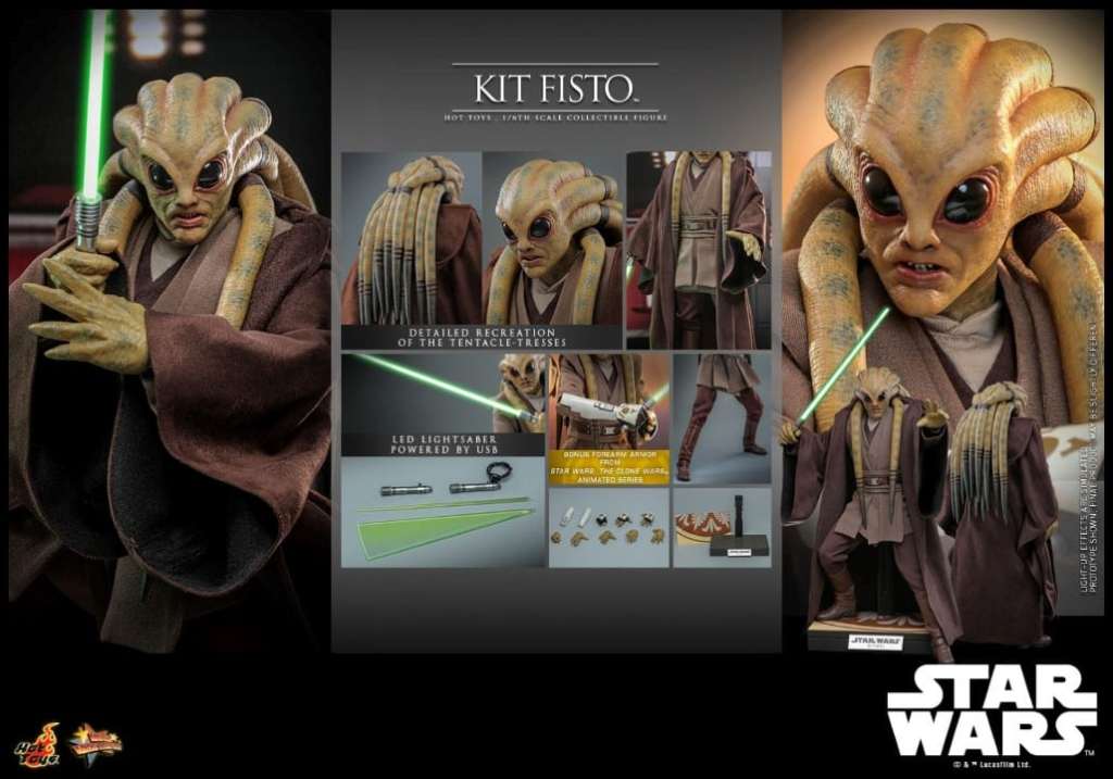 Sideshow and Hot Toys is proud to officially present, the highly-anticipated Kit Fisto Sixth Scale Figure from Star Wars: Episode III Revenge of the Sith for Star Wars fans to enjoy! The highly-accurate collectible figure includes a newly developed head sculpt with incredible likeness and detail recreation of the iconic tentacle-tresses, a meticulously tailored Jedi robe and tunic, a LED light-up lightsaber, a cloak, a display base, and a bonus pair of forearm armors inspired by Kit Fisto’s appearance in Star Wars: The Clone Wars™ animated series! Prepare your display shelves and add this remarkable alien Jedi figure to your Star Wars collectible collection!
