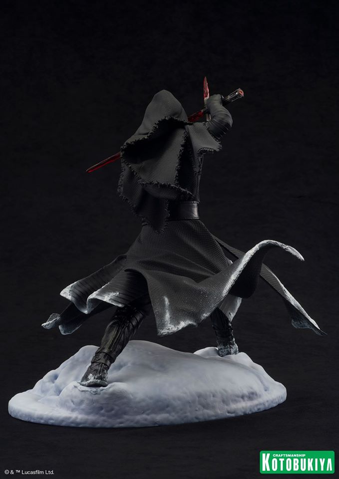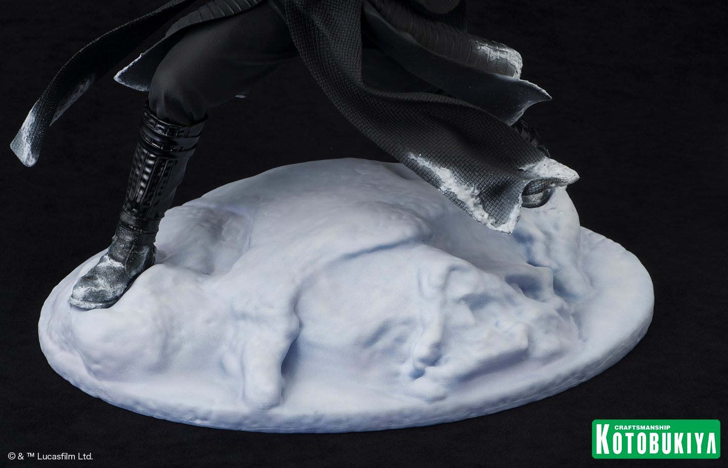 Kotobukiya’s ArtFX Star Wars lineup continues with characters from ‚Star Wars: Episode VII – The Force Awakens‘ starting with none other than Kylo Ren! He looks great in this beautifully sculpted 1/7 scale statue, standing on a snow-themed base sculpted to hint at the shape of Darth Vader’s destroyed helmet.