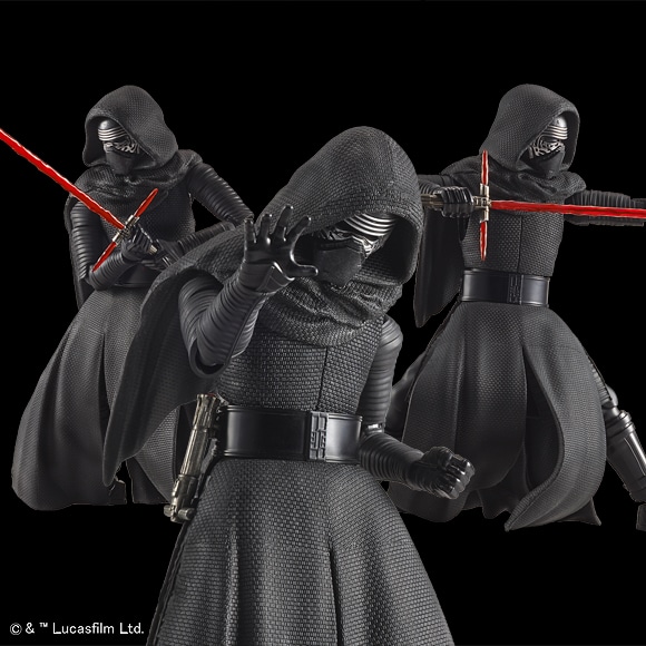 Kylo Ren, der Enkel von Darth Vader, ist da! Der Bausatz enthält drei austauschbare Handteile pro Seite, sowie Teile, um das Lichtschwert gezündet oder im Holster darzustellen! Die Textur seines Umhangs ist aus flexiblem Kunststoff und eine Display-Base sorgt für Stabilität beim Posieren.