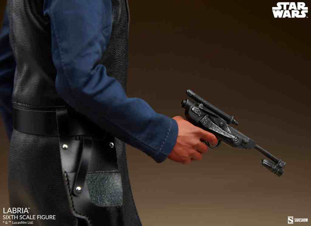Inspired by the character’s appearance in A New Hope™, this fully articulated, highly poseable high-end Star Wars figure wears cut and sew clothing befitting a disguised man of his distinguished station. His costume includes a dark gray cravat, a navy-blue shirt, and a black vest, cape, pants, boots, and gloves. The Labria™ Sixth Scale High-End Collectible Figure comes with a blaster, blaster holster, and a hand for holding the blaster. Additionally, the figure features a pair of relaxed hands and a pair of gesturing hands to increase display options, allowing fans to recreate his most memorable moments in Mos Eisley.