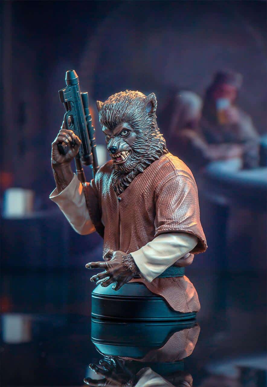 It’s the start of a Halloween tradition! The first in an annual series of Halloween releases, the Lak Sivrak™ 1/6 scale Web Exclusive mini-bust depicts the Shistavanen™ who first appeared in Star Wars: A New Hope™, and became a fan-favorite due to his lycanthropian appearance. Measuring approximately 7 inches, tall, this resin bust is a limited edition, and will ship in a full-color box with a numbered certificate of authenticity.