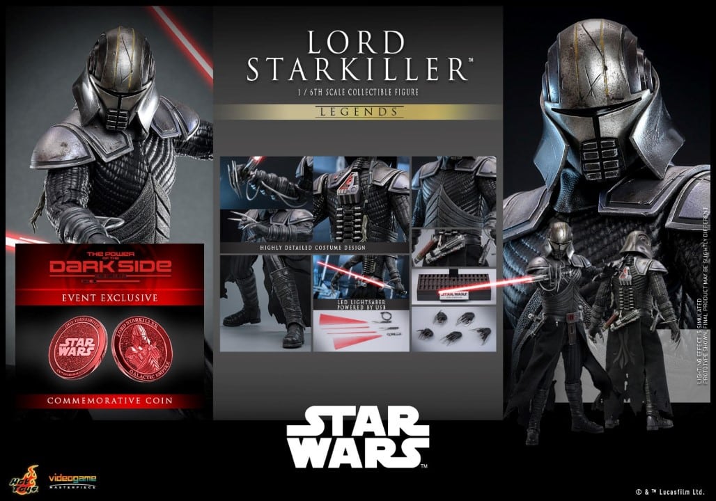 The highly-accurate collectible figure features meticulously crafted helmet and armor, specially tailored body suit, LED light-up LightsabersTM powered by USB, and a display base! The SPECIAL EDITION available in selected markets, comes with a Lord Starkiller commemorative coin to enhance your collecting experience! In addition, this coin will have a unique style that is exclusive to those who pre-order this figure at Hot Toys x “Star Wars: The Power of The Dark Side” exhibition in Hong Kong.