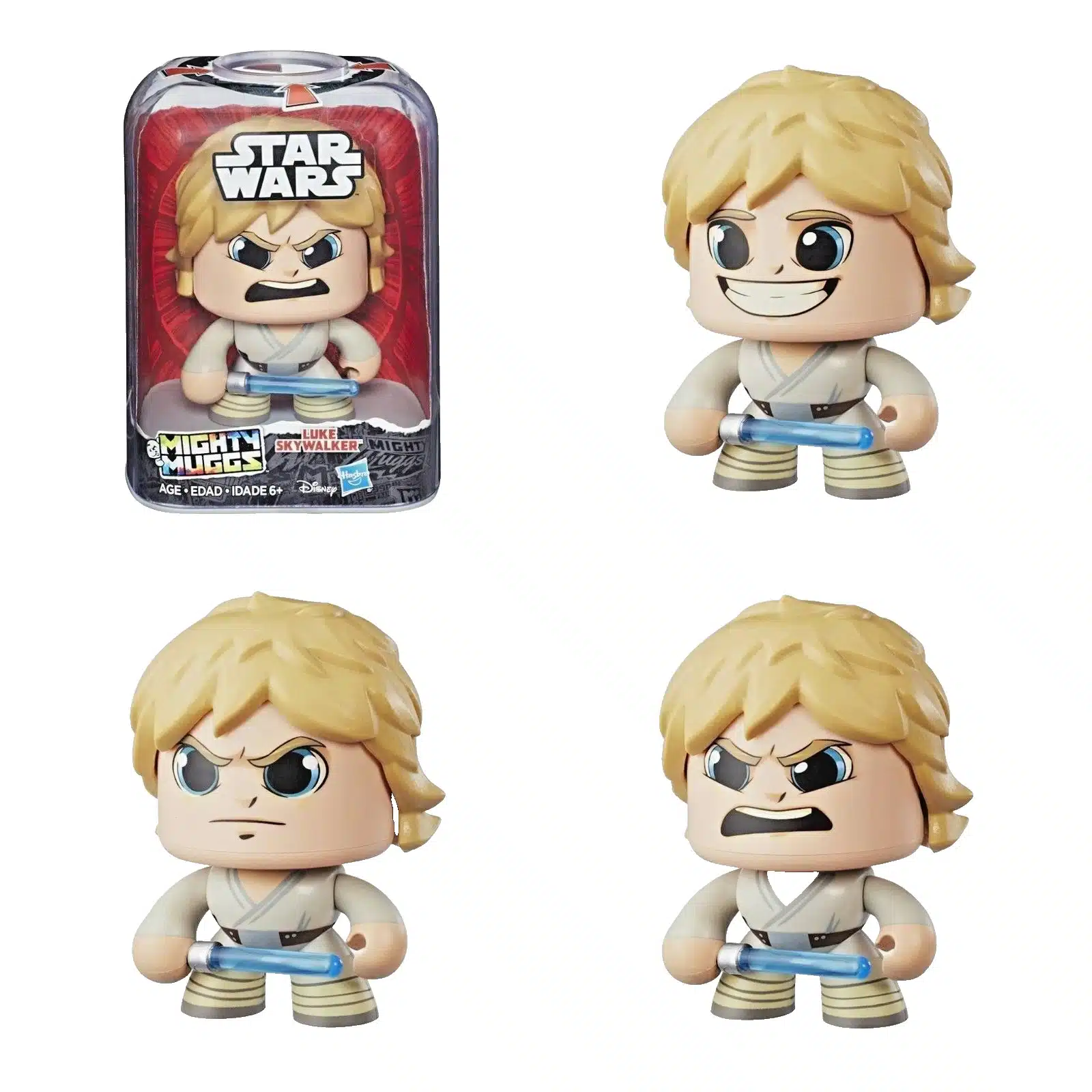 Nenne es Stimmungsschwankung oder nenne es Stimmungsspin – mit Star Wars Mighty Muggs werden sich die Köpfe drehen… im wahrsten Sinne des Wortes. Diese Luke Skywalker Mighty Muggs-Figur verfügt über einen Push-and-Turn-Mechanismus, sodass Kinder und Fans durch wiederholtes Drücken des Knopfes den Kopf zum Drehen bringen können! Mit 3 verschiedenen Gesichtsausdrücken und einem klassischen Charakterdesign, das Sammler dreimal hinschauen lässt, sorgen Star Wars Mighty Muggs für Stimmungsschwankungen im Aufwärtstrend. Weitere Mighty Muggs-Figuren sind separat erhältlich. Star Wars-Produkte werden von Hasbro unter Lizenz von Lucasfilm Ltd. hergestellt. Hasbro und alle damit verbundenen Begriffe sind Marken von Hasbro.