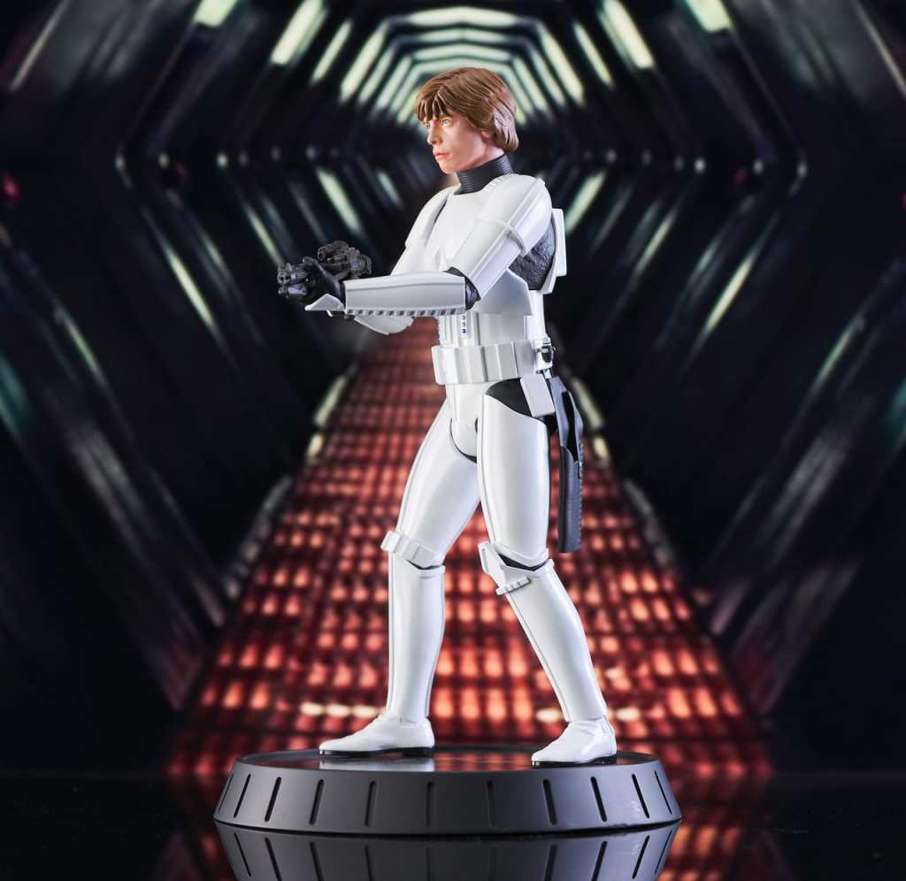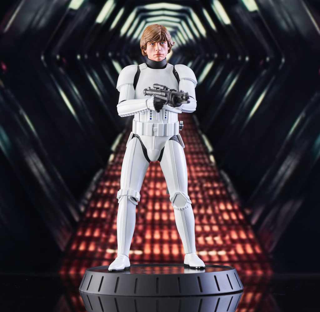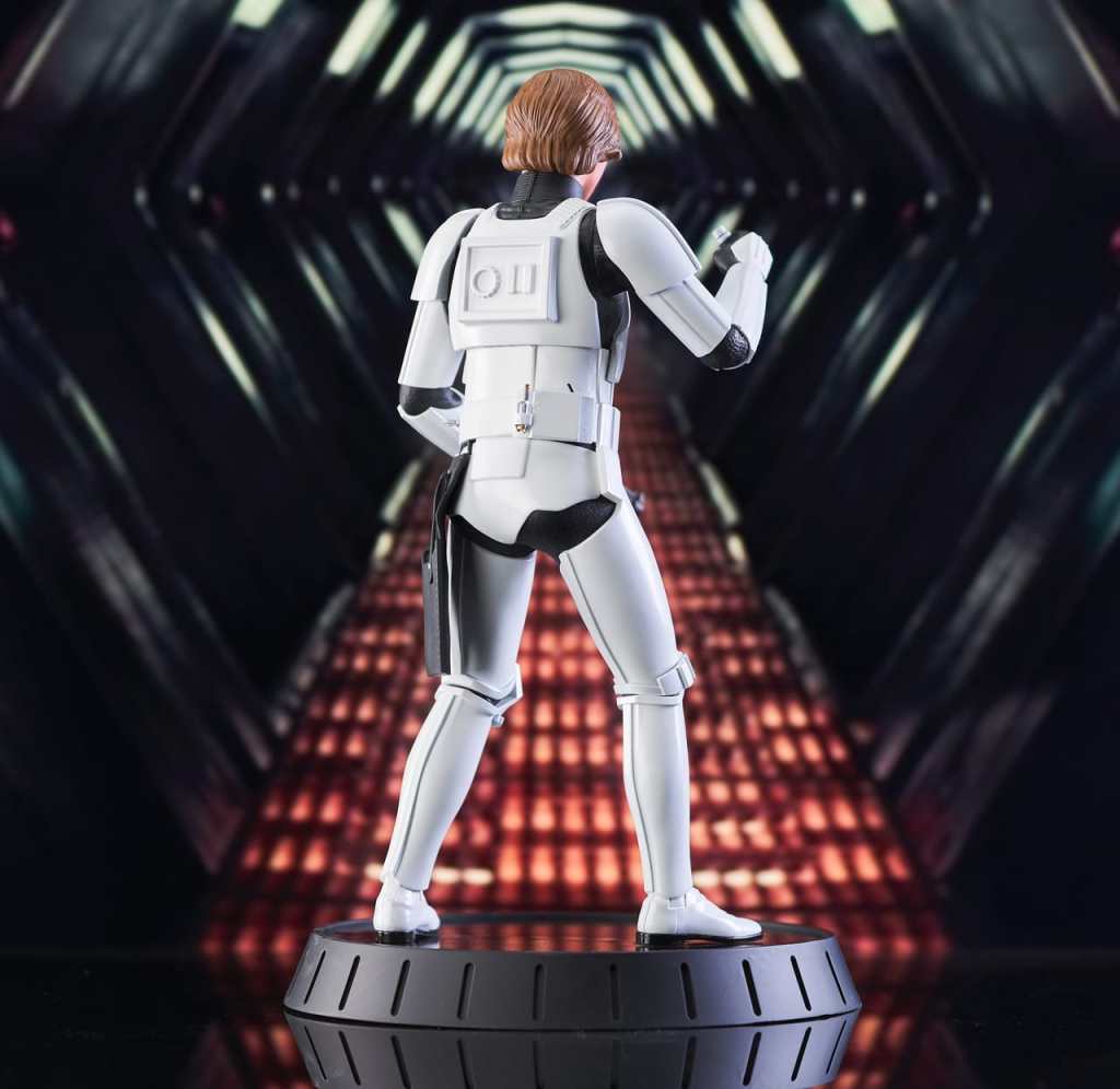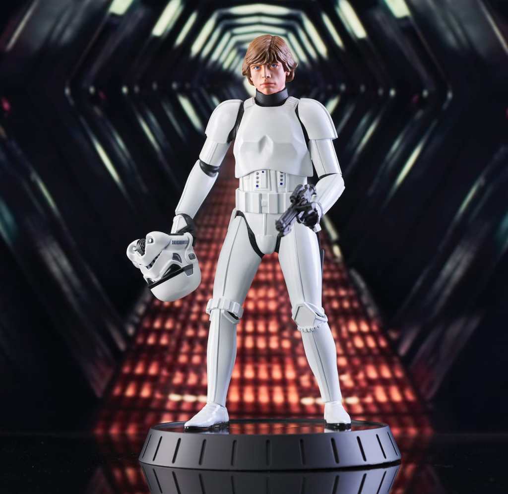 A Gentle Giant LTD release! Shut down all the trash compactors on the detention level! Luke may be a little short for a stormtrooper, but hes just the right size for the Star Wars Milestones collection. At approximately 12 inches tall, this statue of Luke in his stolen Stormtrooper armor will fit right in with your other 1/6 scale collectibles. It includes interchangeable helmeted and unhelmeted heads, is limited to only 1000 pieces and comes packaged with a numbered certificate of authenticity in a full-color box.