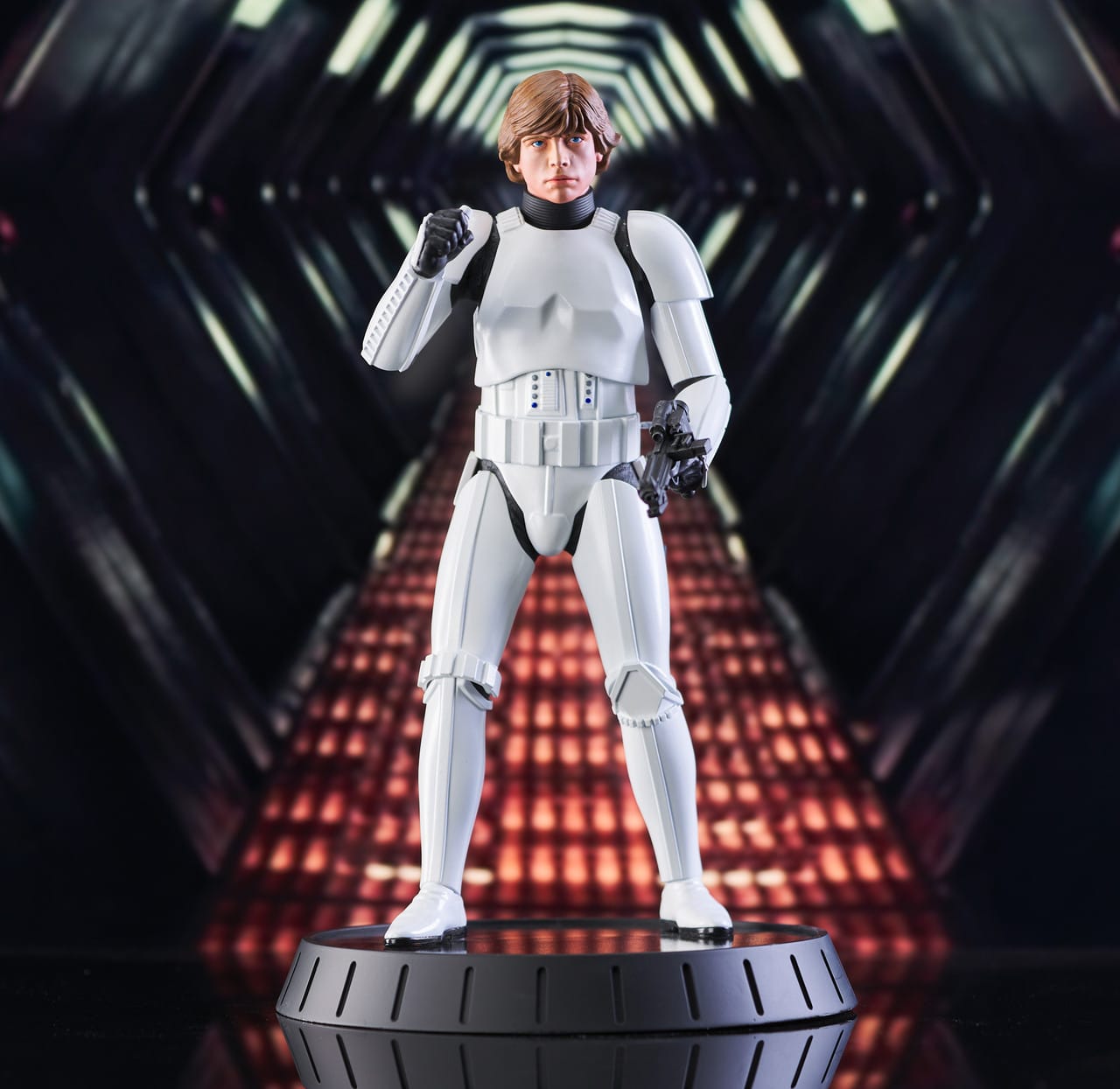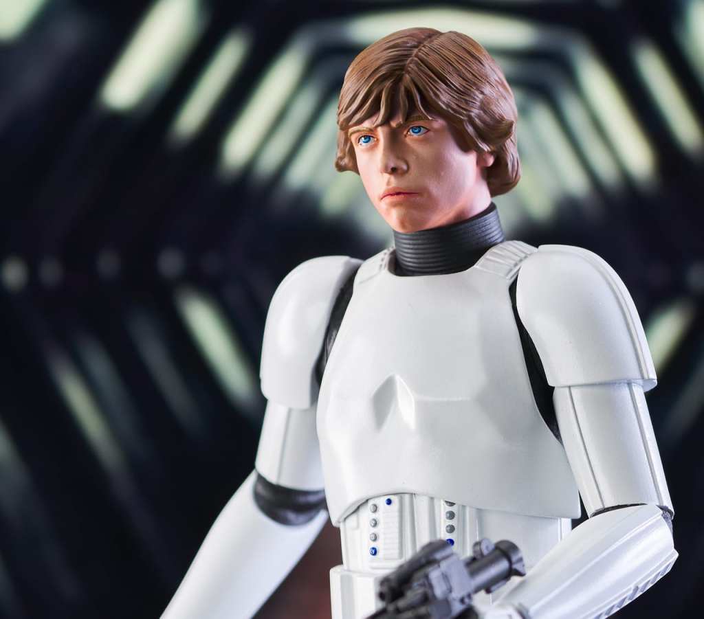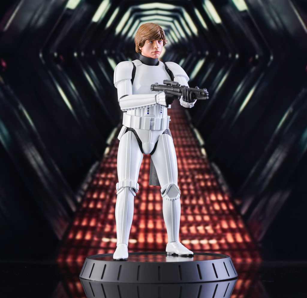 A Gentle Giant LTD release! Shut down all the trash compactors on the detention level! Luke may be a little short for a stormtrooper, but hes just the right size for the Star Wars Milestones collection. At approximately 12 inches tall, this statue of Luke in his stolen Stormtrooper armor will fit right in with your other 1/6 scale collectibles. It includes interchangeable helmeted and unhelmeted heads, is limited to only 1000 pieces and comes packaged with a numbered certificate of authenticity in a full-color box.