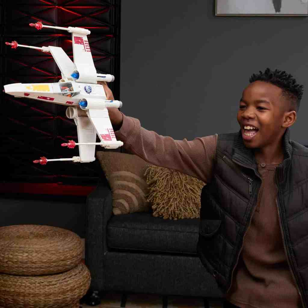 - LUKE SKYWALKERS FORCE STRIKE X-FLÜGLER: Mit Luke Skywalker und dem kultigen X-Flügler, der über blaue Macht-Blast-Effekte verfügt, die sich durch einen Hebel herausschieben lassen, können sich die Fans galaktische Abenteuer vorstellen