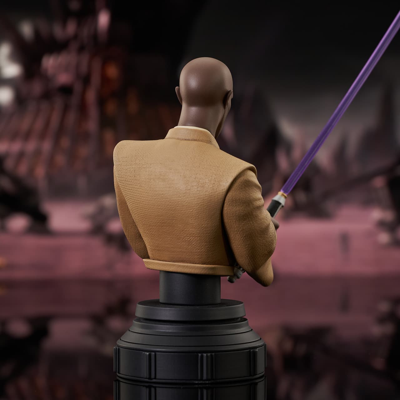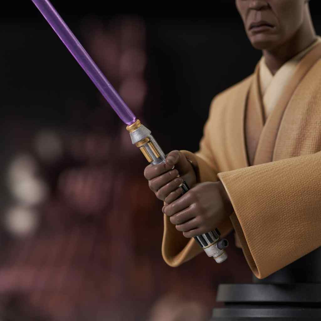 A Gentle Giant LTD release! The Jedi council has spoken! Mace Windu is the next animation-based 1/7 scale mini-bust! Standing approximately 6 inches tall (8 inches with lightsaber) the leader of the council and wielder of the purple lightsaber is captured in his Clone Wars animated look in this all-new bust. Limited to only 3000 pieces, it comes packaged in a full-color window box.