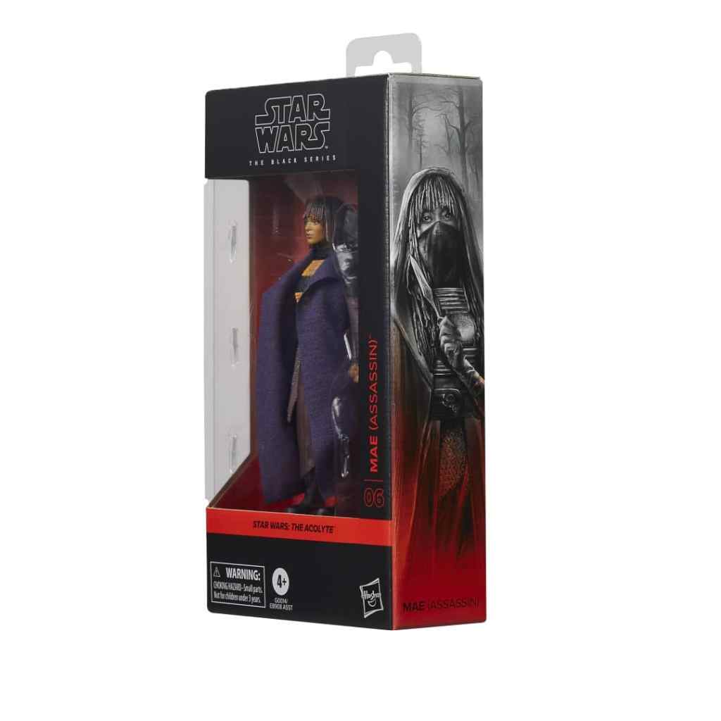 STAR WARS  fans and collectors can imagine scenes from the STAR WARS galaxy with this premium 6-inch STAR WARS: THE BLACK SERIES MAE (ASSASSIN) figure, inspired by the character’s appearance in STAR WARS: THE ACOLYTE. At the end of the High Republic era, a former Padawan reunites with her Jedi Master to investigate a series of crimes – but the forces they confront turn out to be far more sinister and personal than anticipated. Fans and collectors can display this fully articulated figure featuring premium detail and multiple points of articulation in their collection. Includes figure and 5 entertainment-inspired accessories including 4 knife accessories and a removable face wrap.
