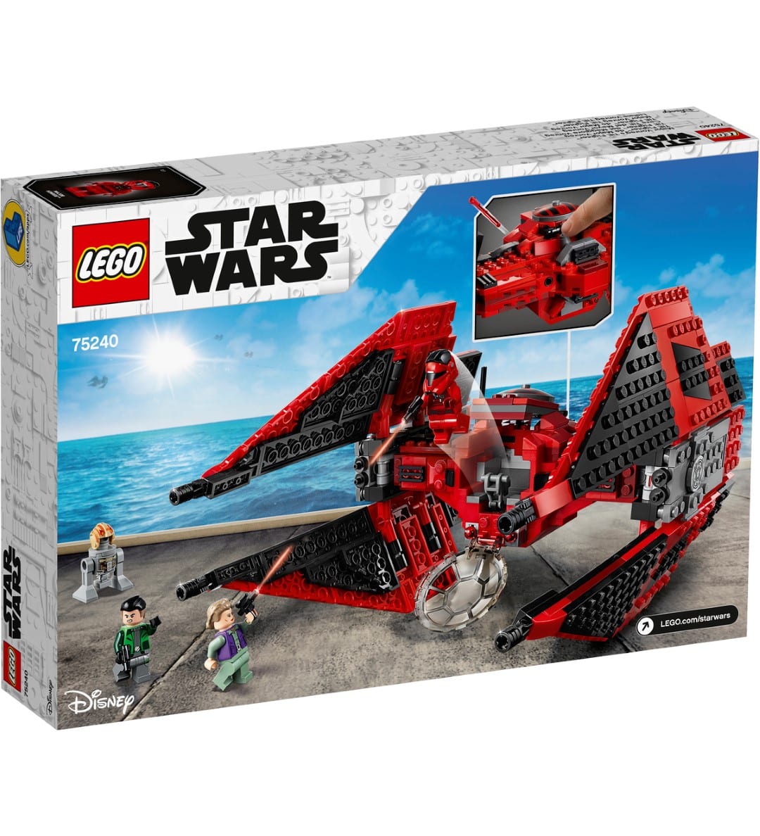 Mit dem LEGO® Star Wars™ Konstruktionsspielzeug „Major Vonreg’s TIE Fighter™“ (75240) können Kinder in die Welt der TV-Serie „Star Wars Resistance“ eintauchen. Dieses detailreiche Modell besticht durch seine Farbgestaltung in Schwarz und Rot, einem zu öffnenden Cockpit mit Platz für die Major Vonreg Minifigur sowie 2 federunterstützte Shooter, mit denen durch das Hin- und Herbewegen des Auslösers gezielt wird. Das Set umfasst zudem die LEGO Star Wars Minifiguren von General Leia und Kaz Xiono sowie eine LEGO Figur des Droiden R1-J5, a.k.a. Bucket.