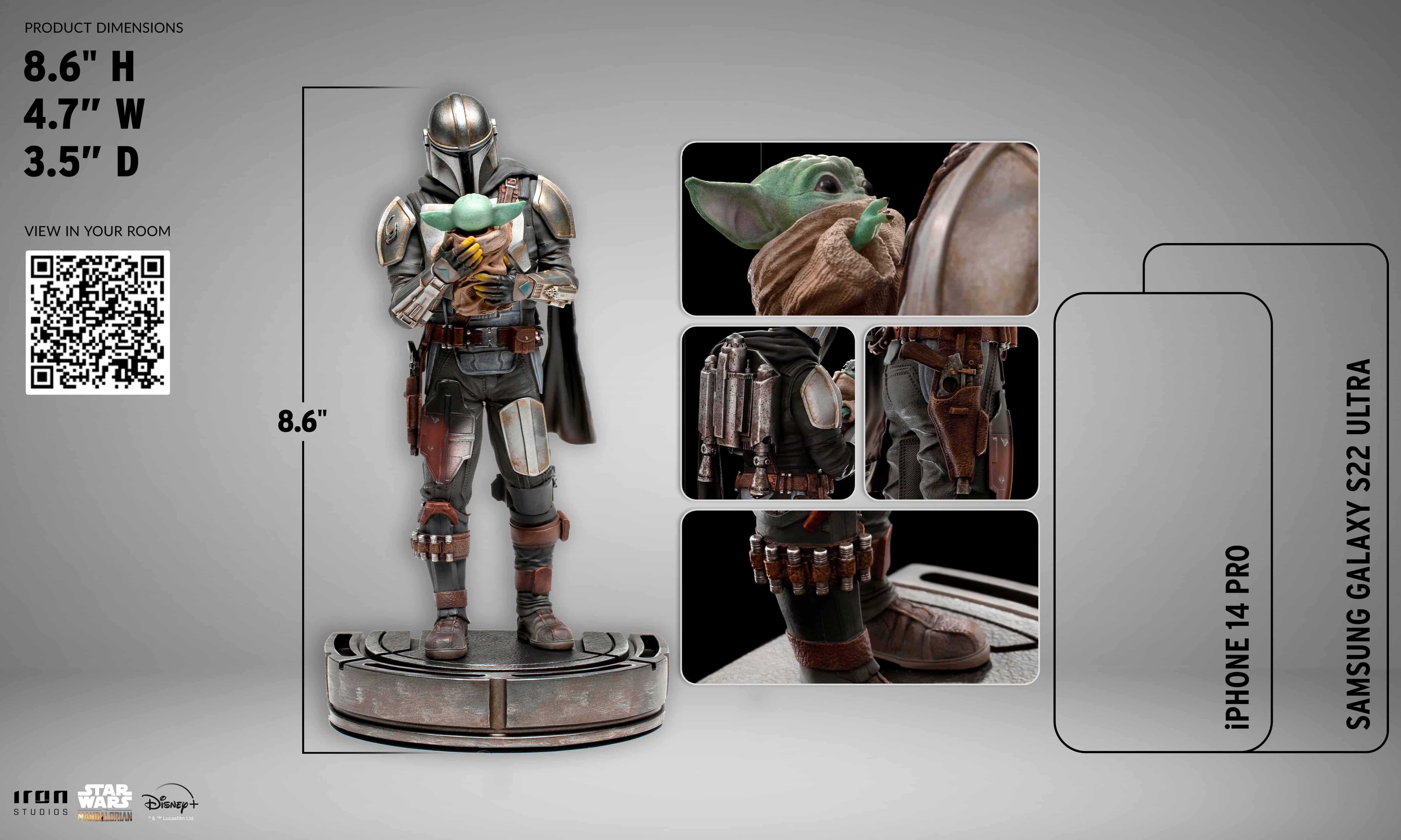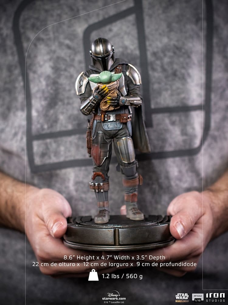 Replicating one of the most tender moments of The Mandalorian series, Iron Studios presents its statue „The Mandalorian and Grogu Art Scale 1/10 – The Mandalorian – Iron Studios“, the first made on this scale and derived from the renowned series. Mando, who is on a base inspired by the floor of a spaceship, carries his adopted son, and the statue accurately replicates the details of his beskar armor, a metal resistant to lightsaber attacks. These captivating characters are among the future releases of Iron Studios, which were revealed in the virtual event „Inside Iron Studios Day“ – May 2021, shown on Iron Studios` YouTube channel, where many other surprises were previously presented.