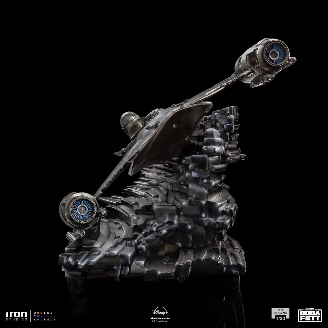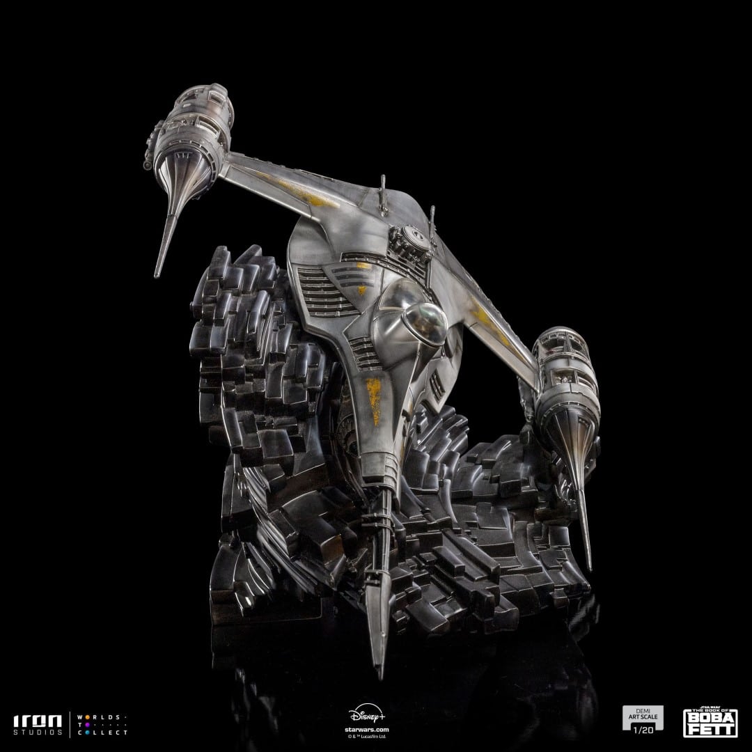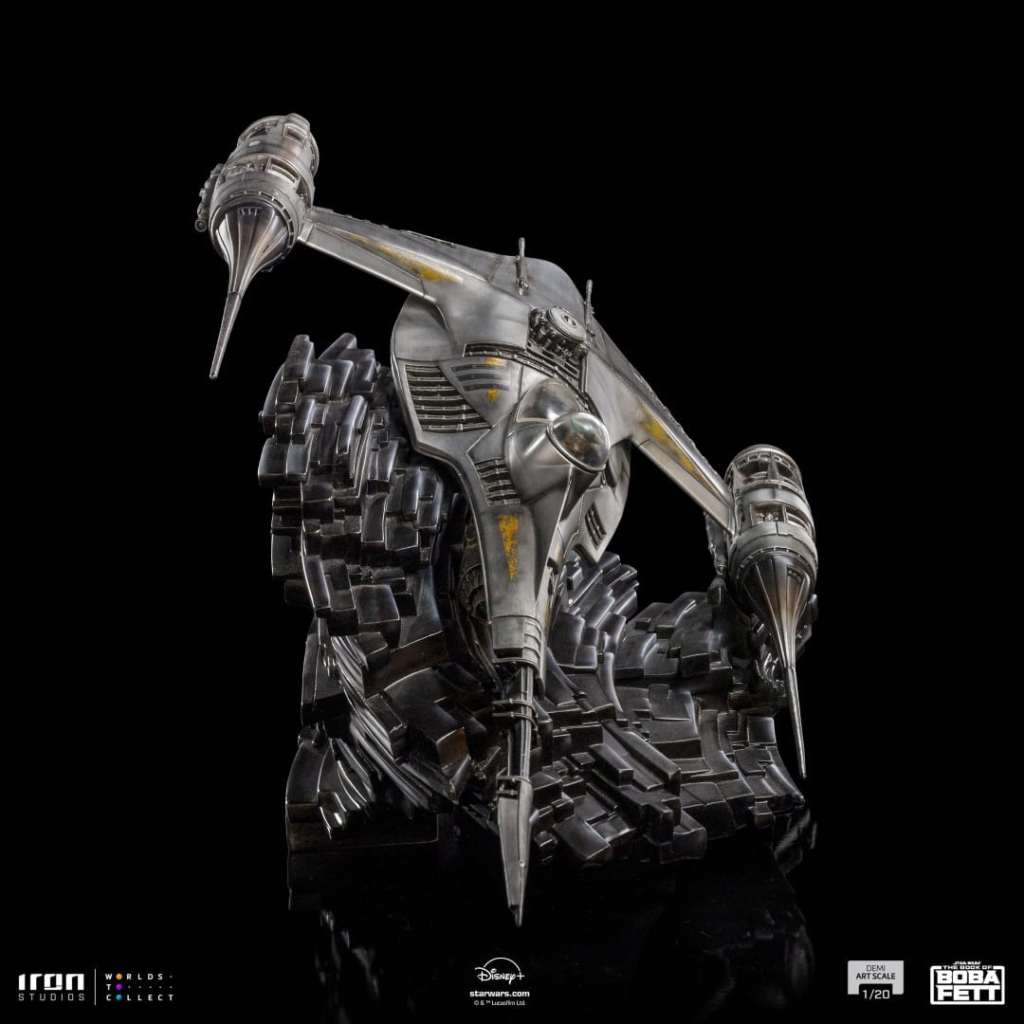 The N-1 Starfighter of Din Djarin appeared for the first time in Chapter 5: Return of the Mandalorian of The Book of Boba Fett series, a Star Wars Spin-off written by Jon Favreau, available on the Disney Plus Streaming Service. Revealed on the Inside Iron Studios Day show of February on the YouTube channel of Iron Studios, the statue is already available for Pre-Order, and it was meticulously reproduced down to the tiniest detail, based on the original references. Soon more news from the Star Wars universe by Iron Studios.