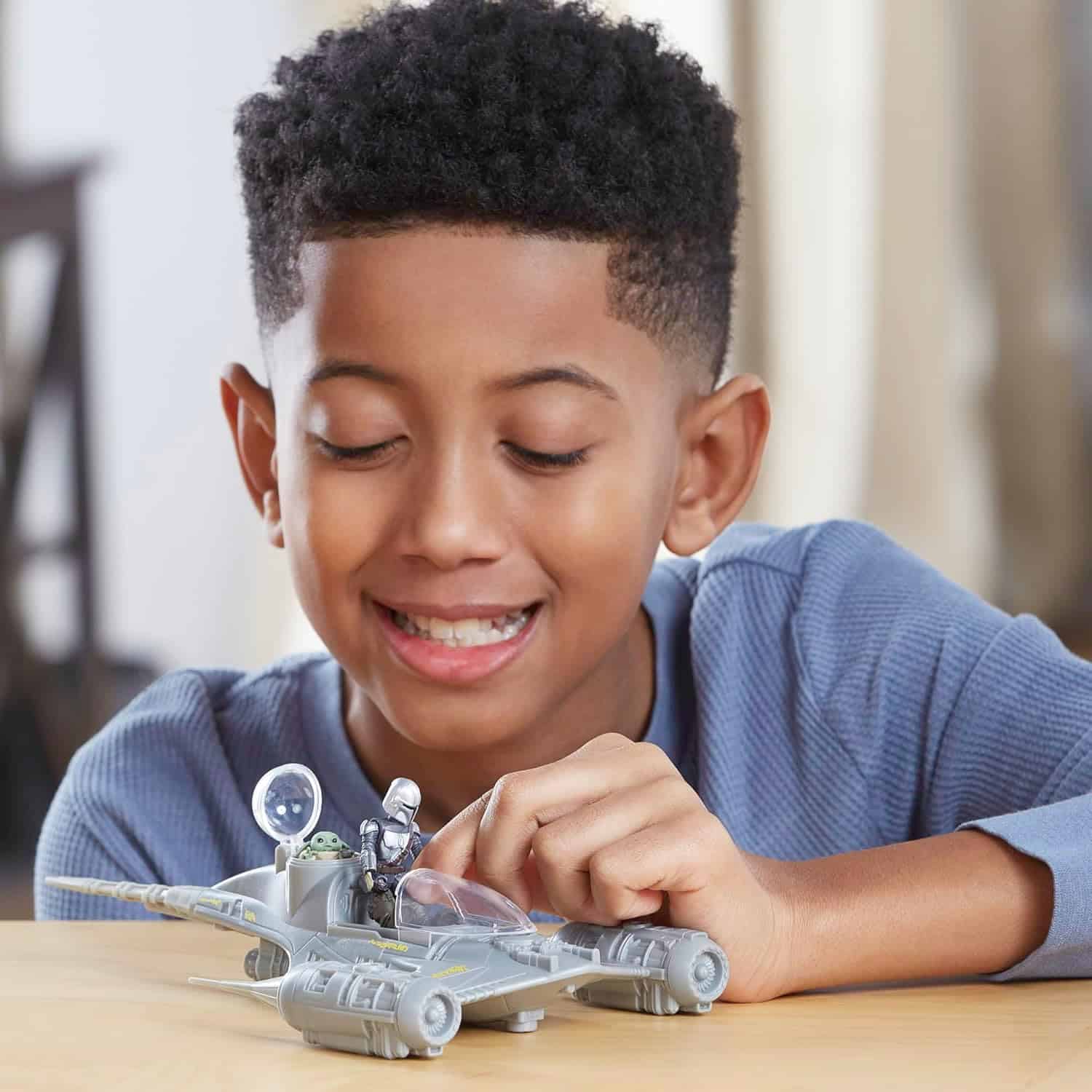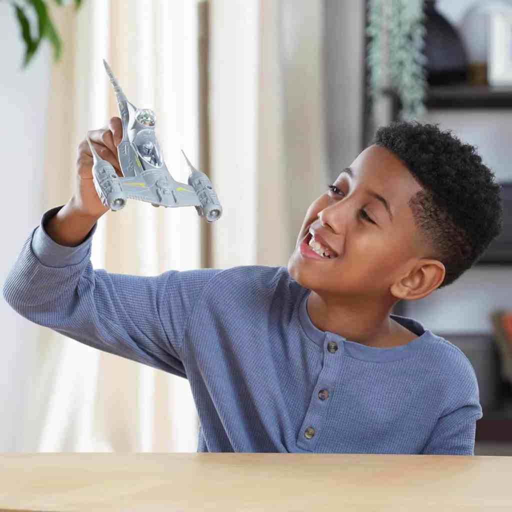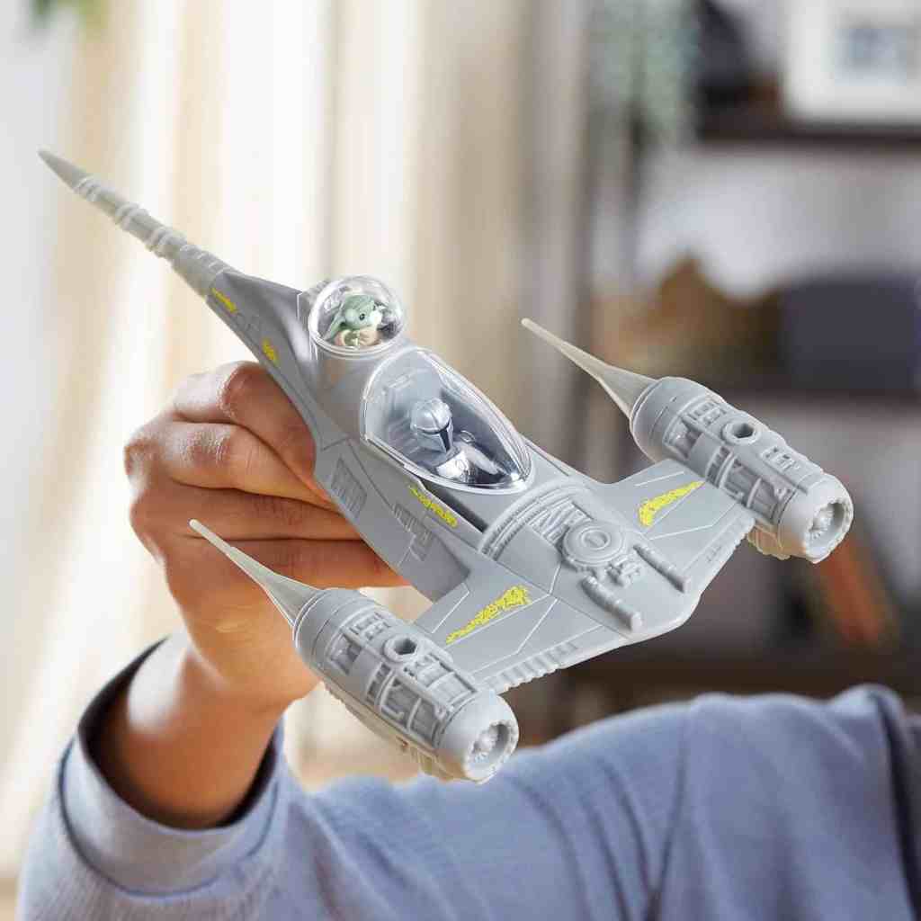 - N-1 STARFIGHTER STAR WARS SHIP – Platzieren Sie die mandalorianische Actionfigur im Cockpit des N-1 Starfighters und das Grogu Spielzeug in der Luke, um sich vorzustellen, durch die Galaxie zu rasen