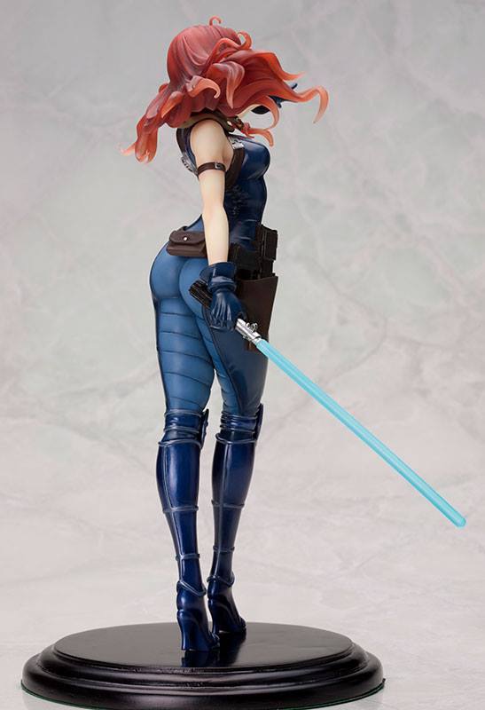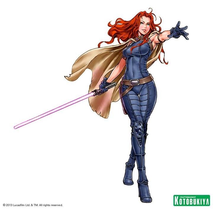 Kotobukiya is proud to continue the ARTFX Bishoujo line with one of the most popular characters from the Star Wars Extended Universe: Mara Jade. Wearing her trademark form-fitting combat suit, Mara strides confidently forward stretching out with the Force and holding a lightsaber at the ready.