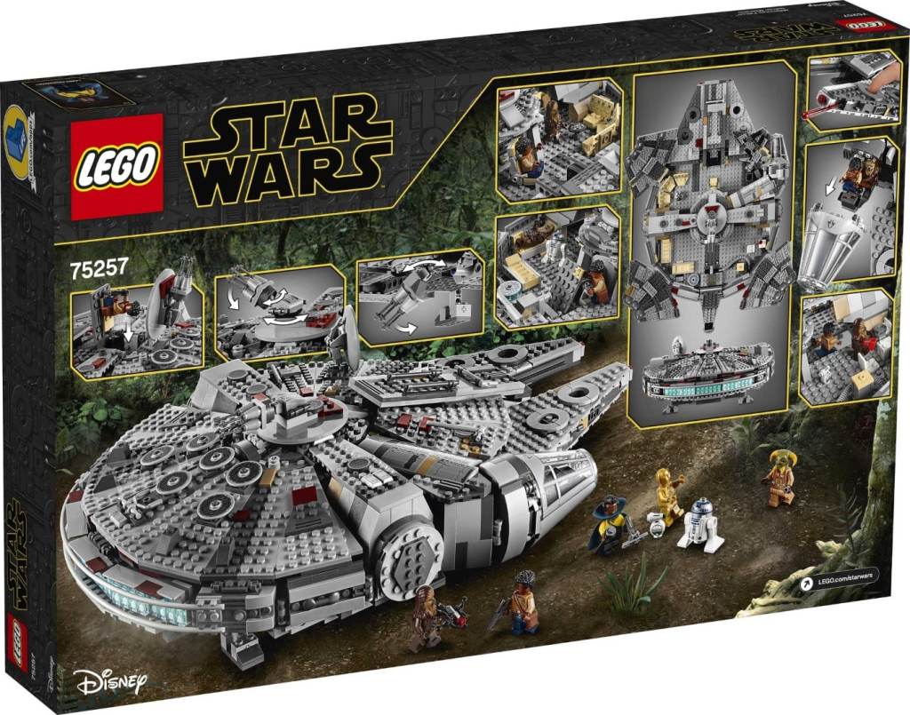 - Zu den äußeren Merkmalen des Modells „Millennium Falke“ von LEGO® Star Wars™ gehören drehbare obere und untere Geschütztürme (in den unteren Geschützturm passen 2 Minifiguren), 2 Shooter mit Federmechanismus, eine absenkbare Rampe und ein aufklappbares Cockpit mit Platz für 2 Minifiguren.