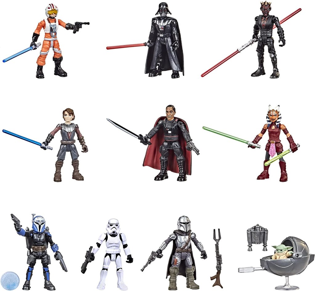 - KULTIGE STAR WARS CHARAKTERE: Der 10er-Pack enthält Darth Vader, Grogu, Mandalorianer, Stormtrooper, Luke Skywalker, Ahsoka Tano, Bo-Katan, Darth Maul, Moff Gideon und Anakin Skywalker