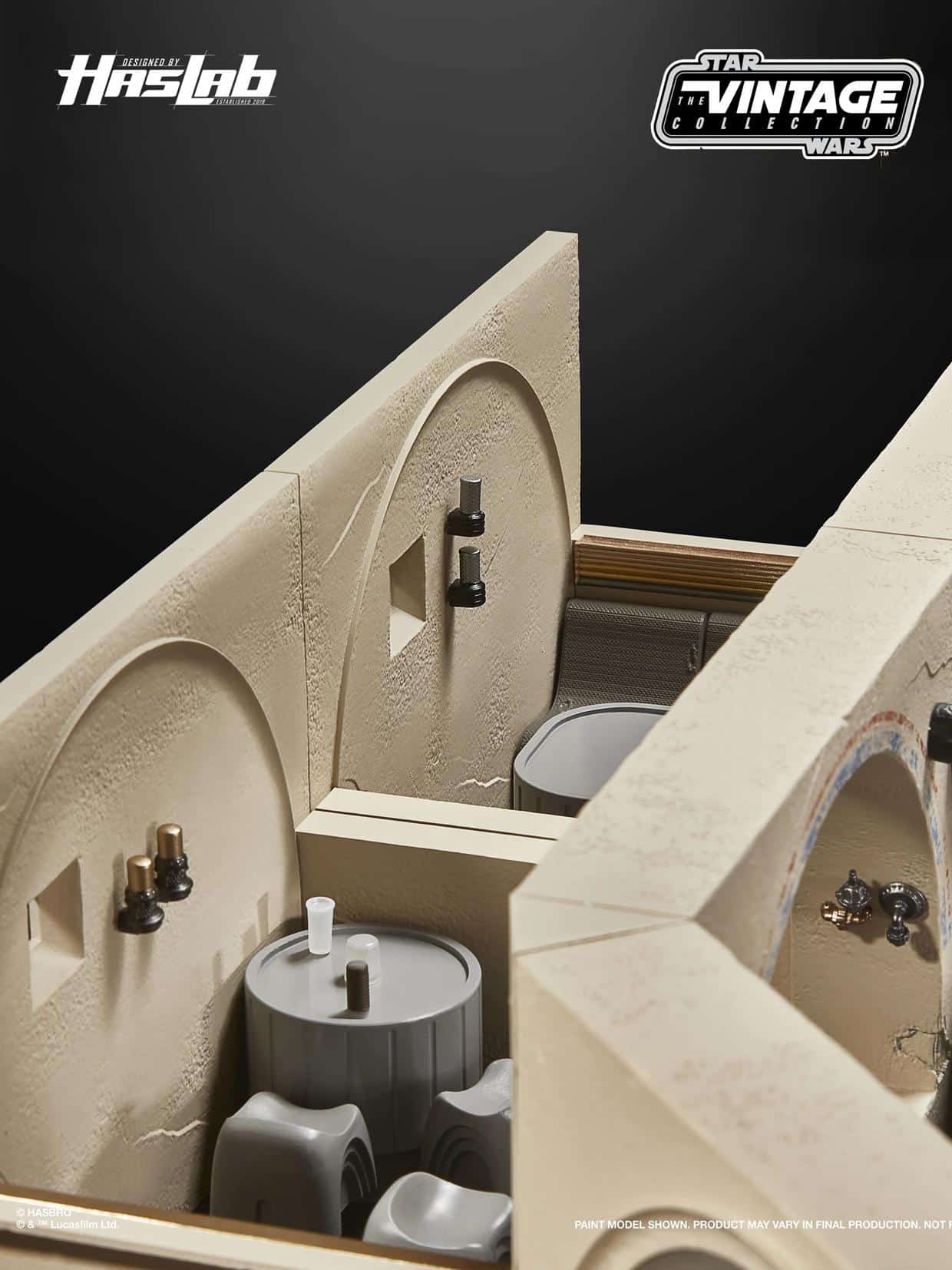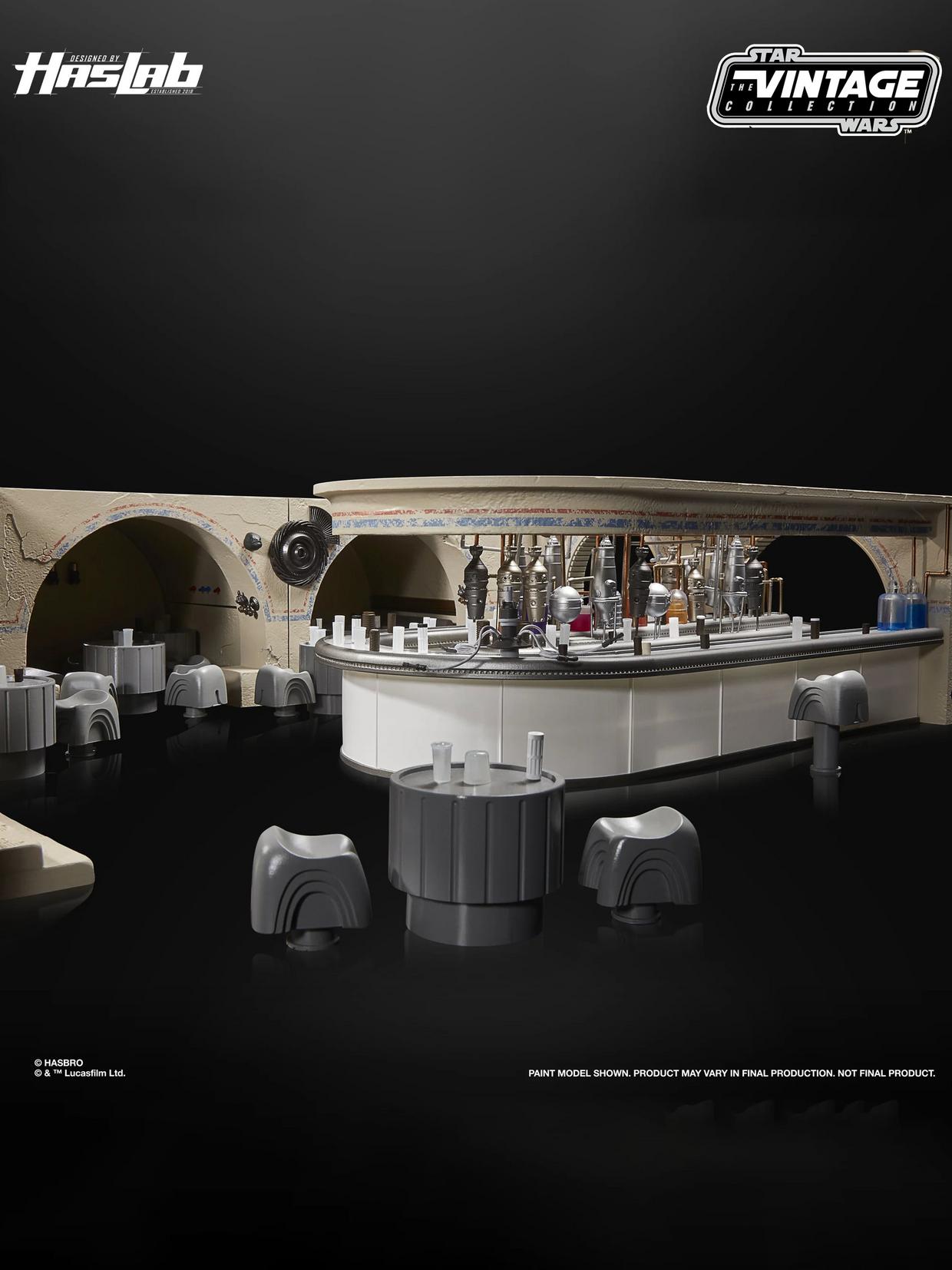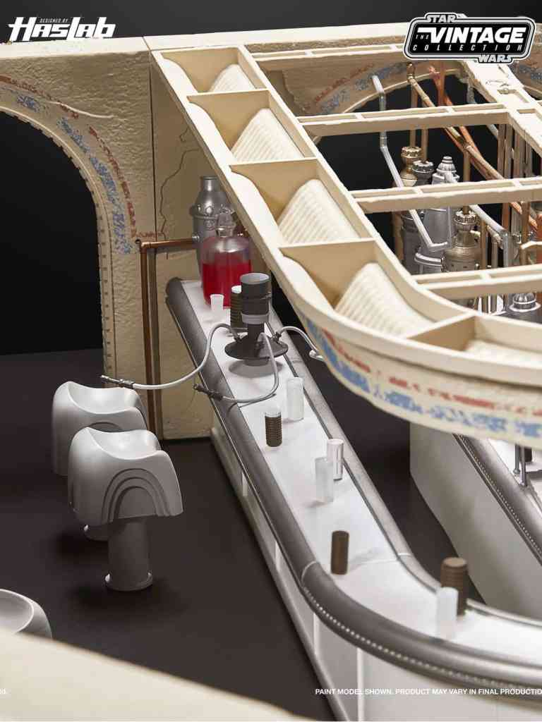 Unser HasLab Designteam bezog sich auf die Originalzeichnungen, um die Cantina mit der Detailtreue zum Leben zu erwecken, die Fans von der Vintage Collection gewohnt sind − einschließlich eines vollständig modularen, austauschbaren Designs.