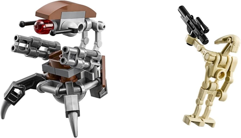 • Enthält 3 Minifiguren mit Ausrüstung und Zubehör: Anakin Skywalker, Obi-Wan Kenobi und ein Naboo-Pilot sowie R2-D2, 2 Battle Droids und ein Battle Droid Kommandant mit der entsprechenden Ausrüstung.