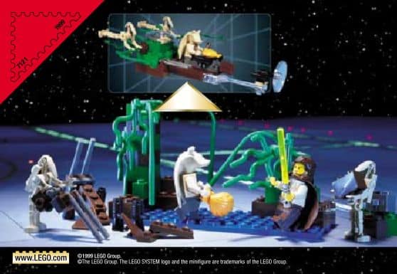 Die Kampfdroiden auf ihren STAPs halten Qui-Gon Jinn und Jar Jar Binks im Sumpf gefangen. Können sie entkommen?